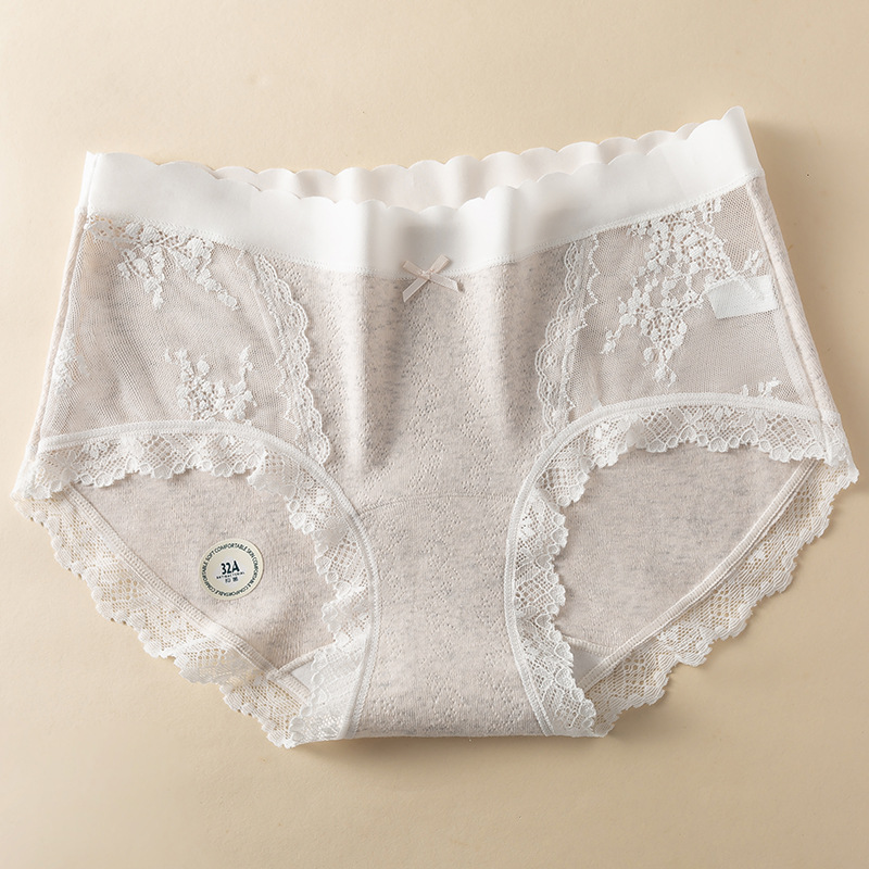 순수한 욕망 스타일 섹시한 레이스 소녀 속옷 7A 항균 순수 코튼 가랑이 중공 메쉬 여성용 중간 허리 팬티
