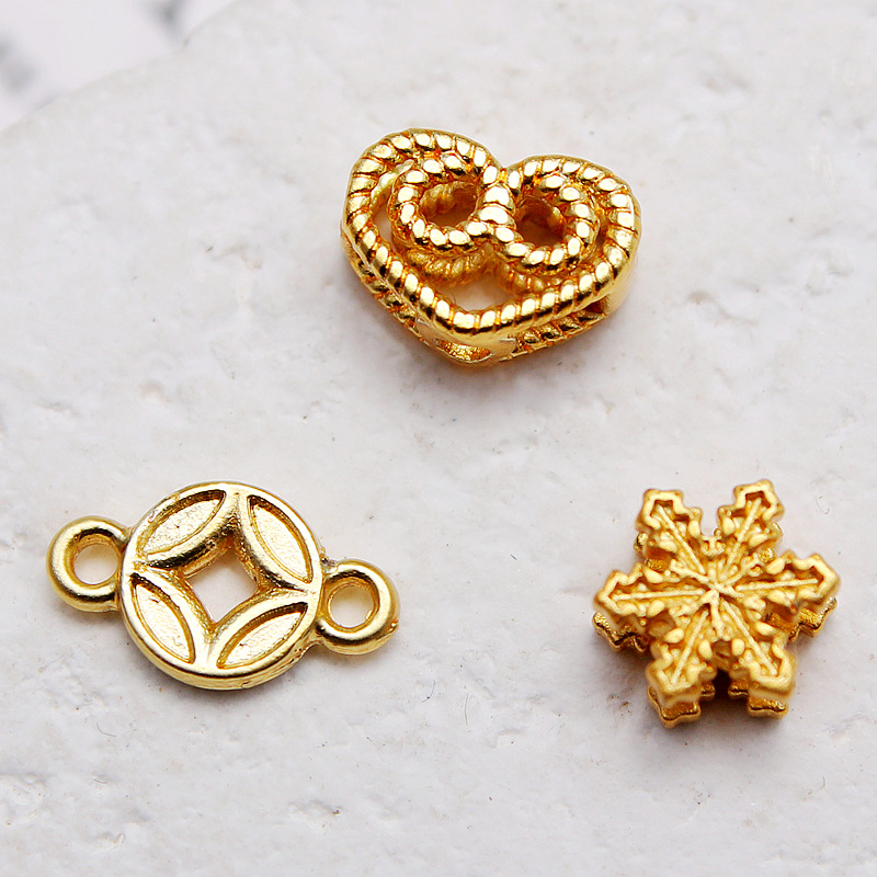 沙金包金保色蕾丝镂空爱心雪花隔珠双吊钱币diy配件编绳串珠材料