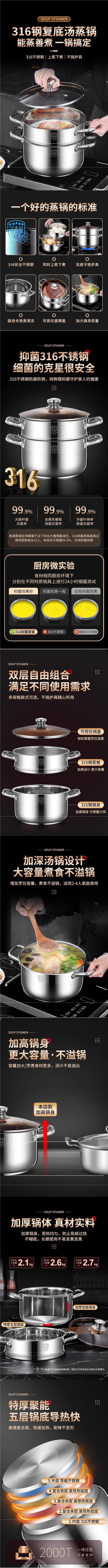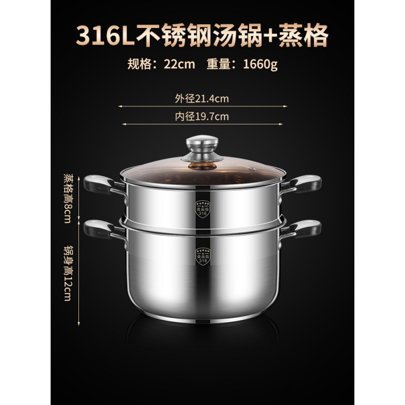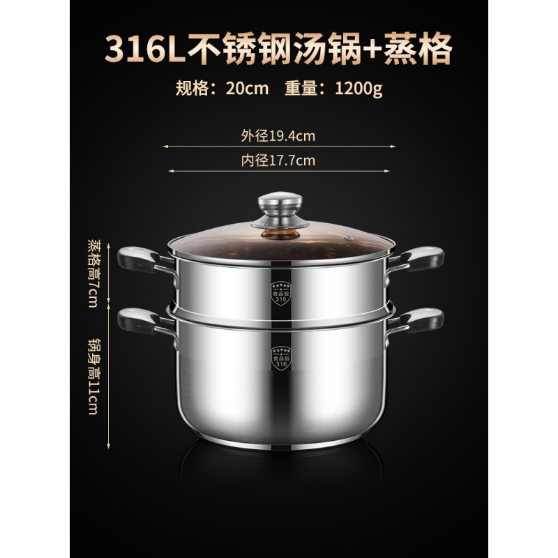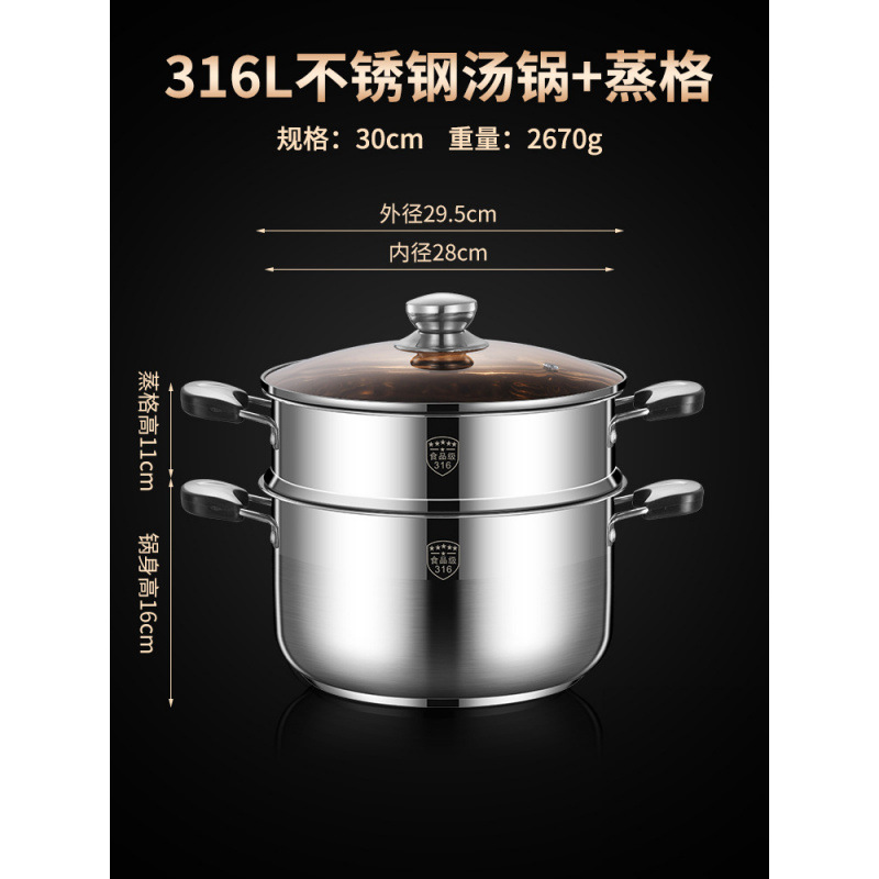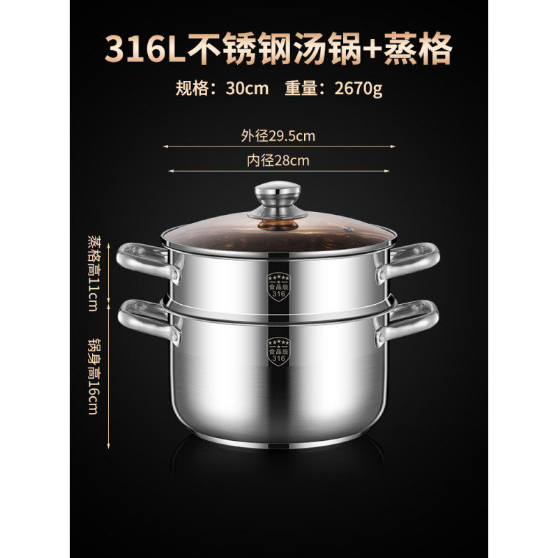 작은 증기선 316 스테인레스 스틸 3 층 두꺼운 가정용 수프 냄비 증기선 더블 멀티 2 층 유도 밥솥 가스 스토브 도매스토어 가기
