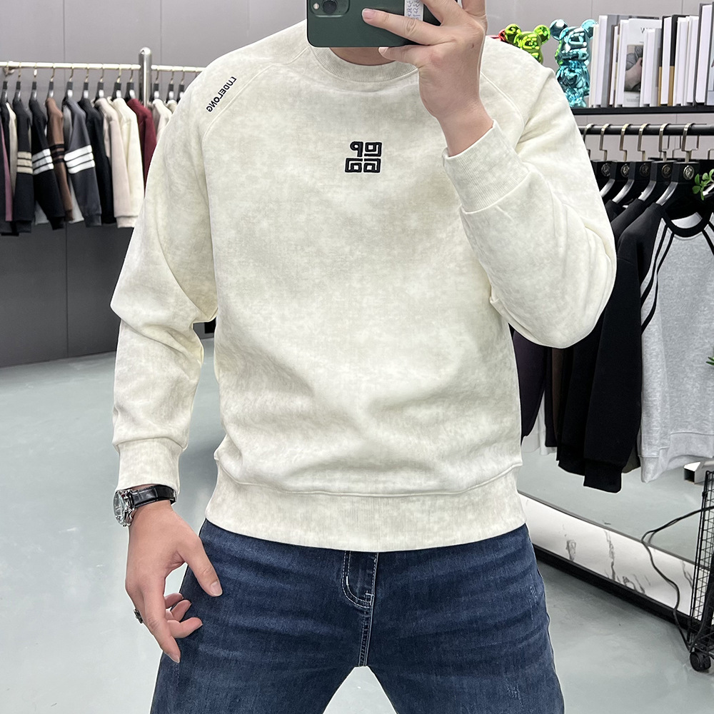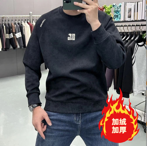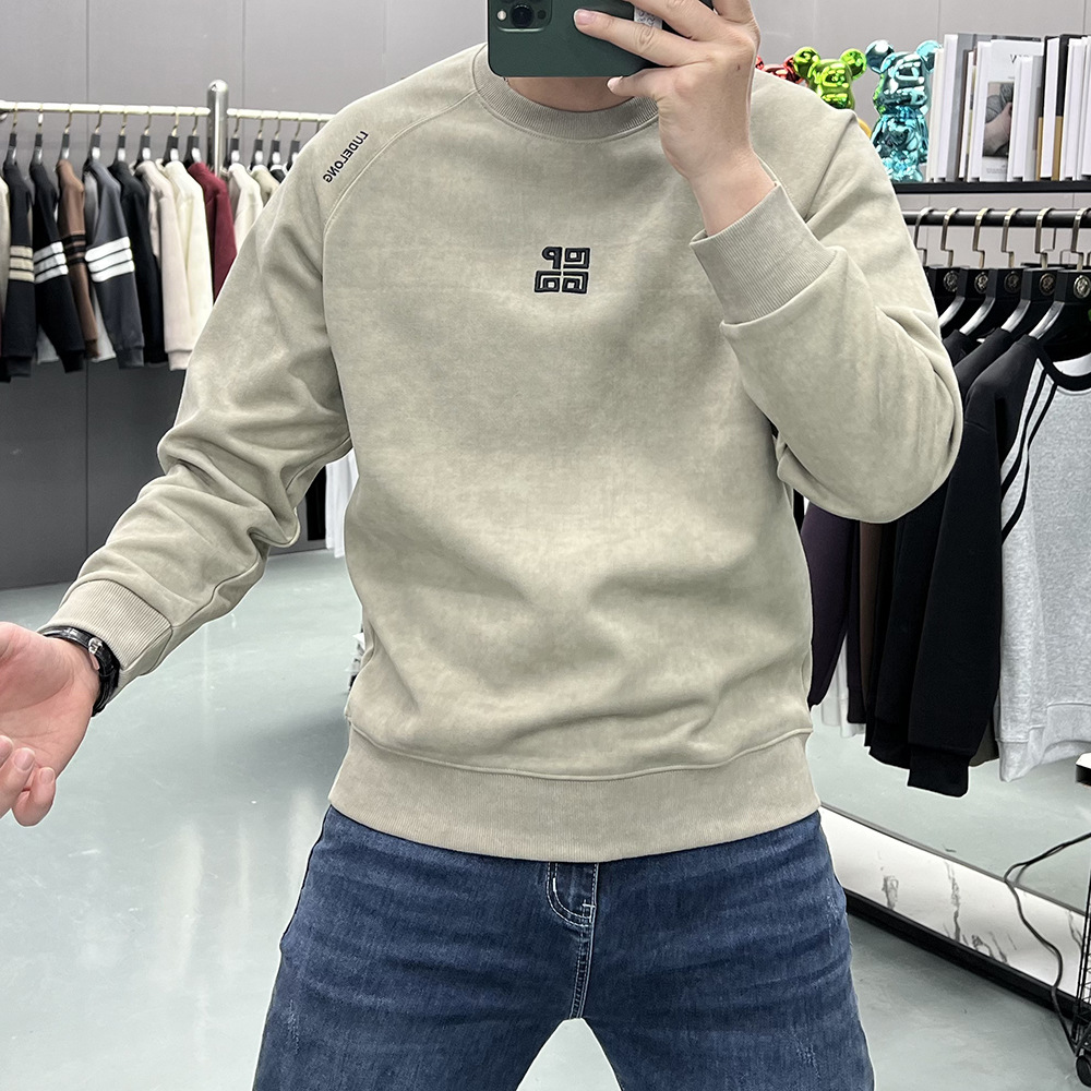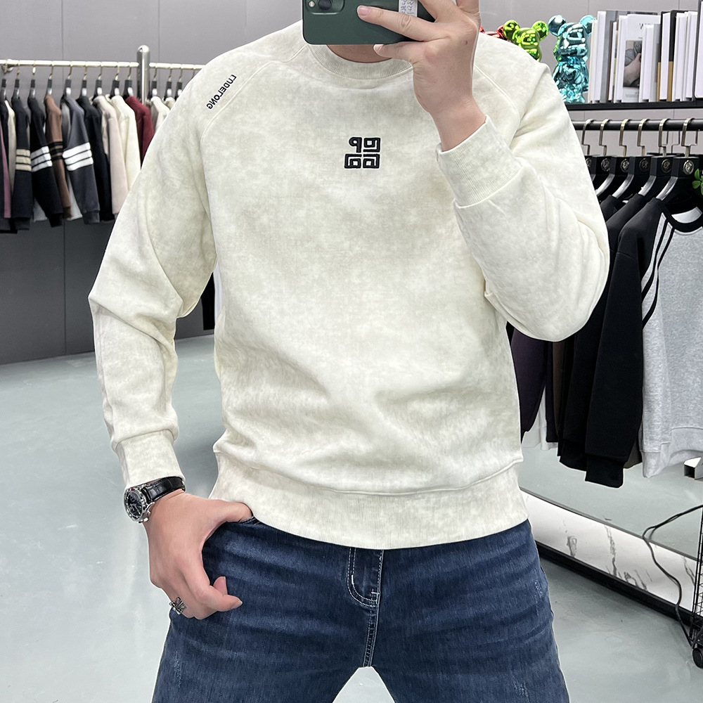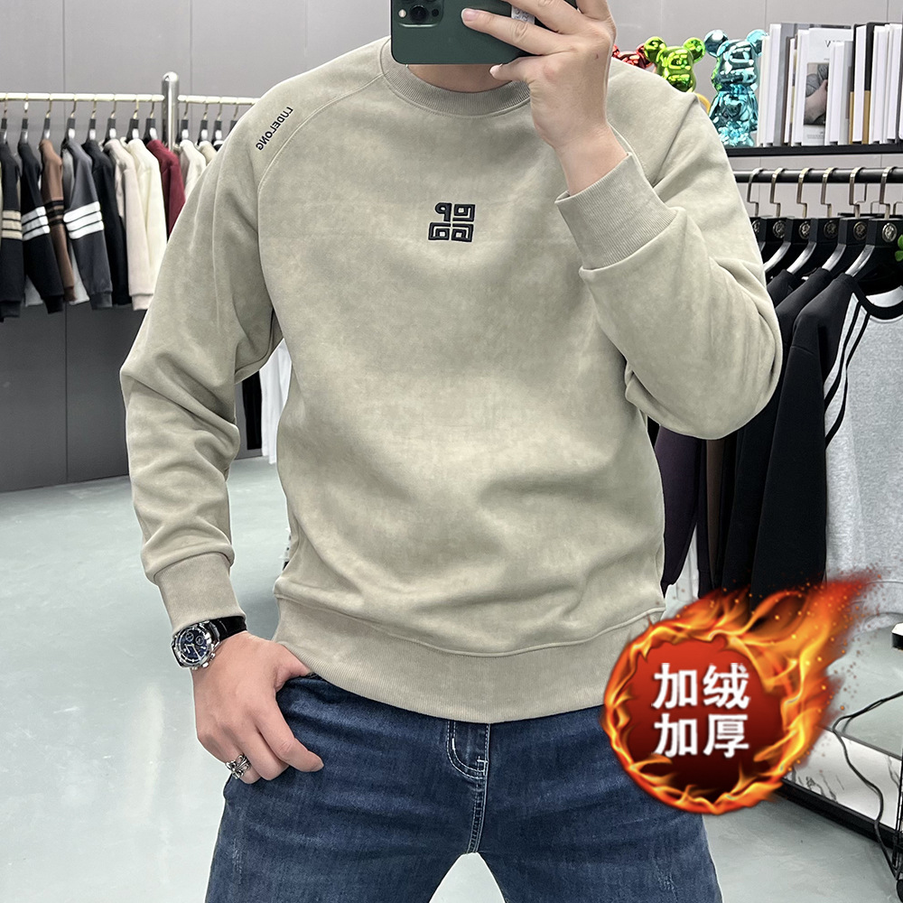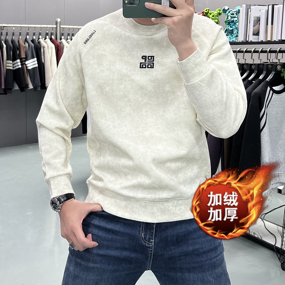 2025 가을과 겨울 매달려 염색 불타는 꽃 자수 겨울 둥근 목 기모 두꺼운 따뜻한 스웨터 겨울 남성 긴팔 티셔츠스토어 가기