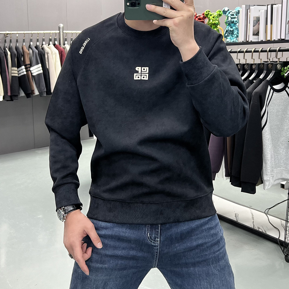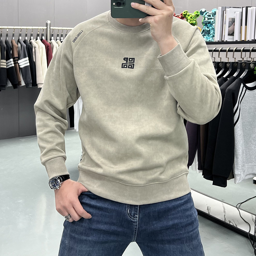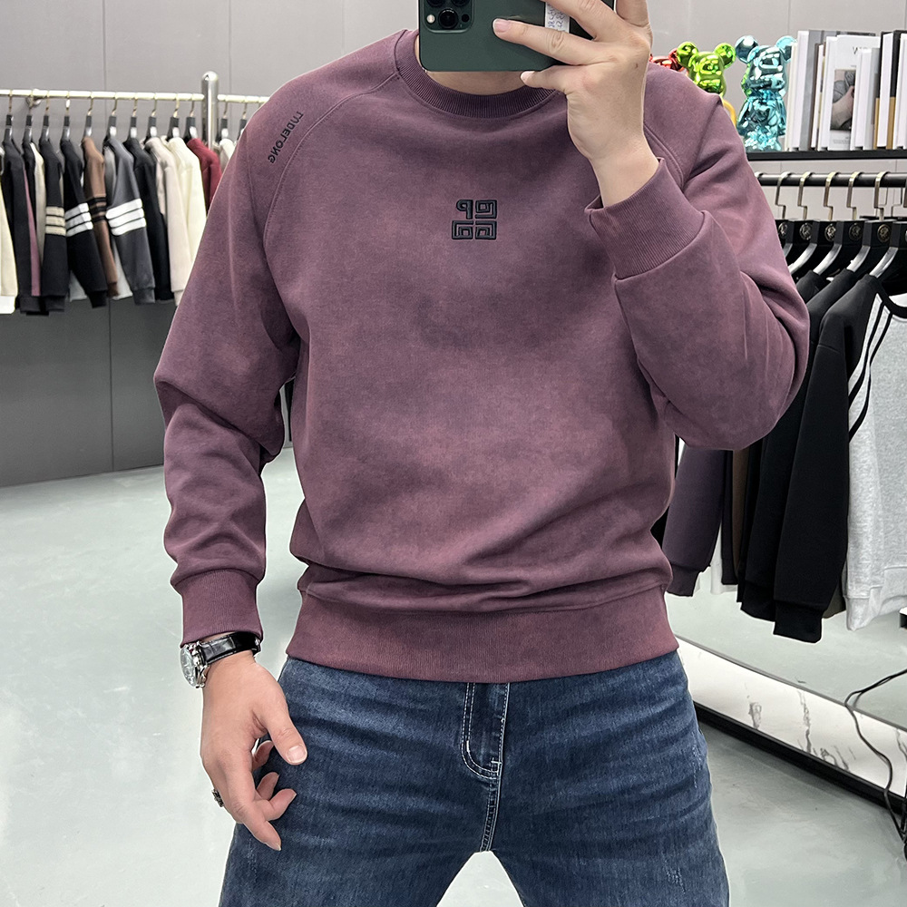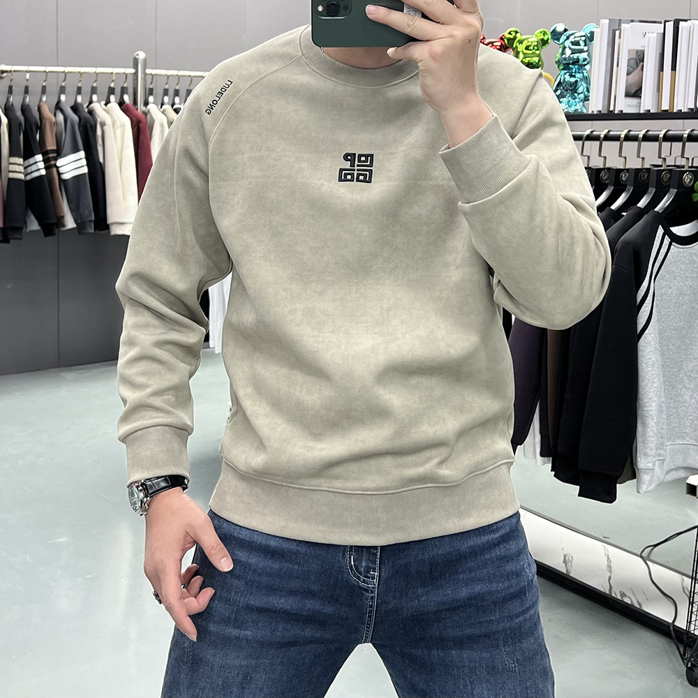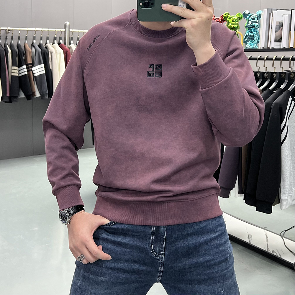 2025 가을과 겨울 매달려 염색 불타는 꽃 자수 겨울 둥근 목 기모 두꺼운 따뜻한 스웨터 겨울 남성 긴팔 티셔츠스토어 가기