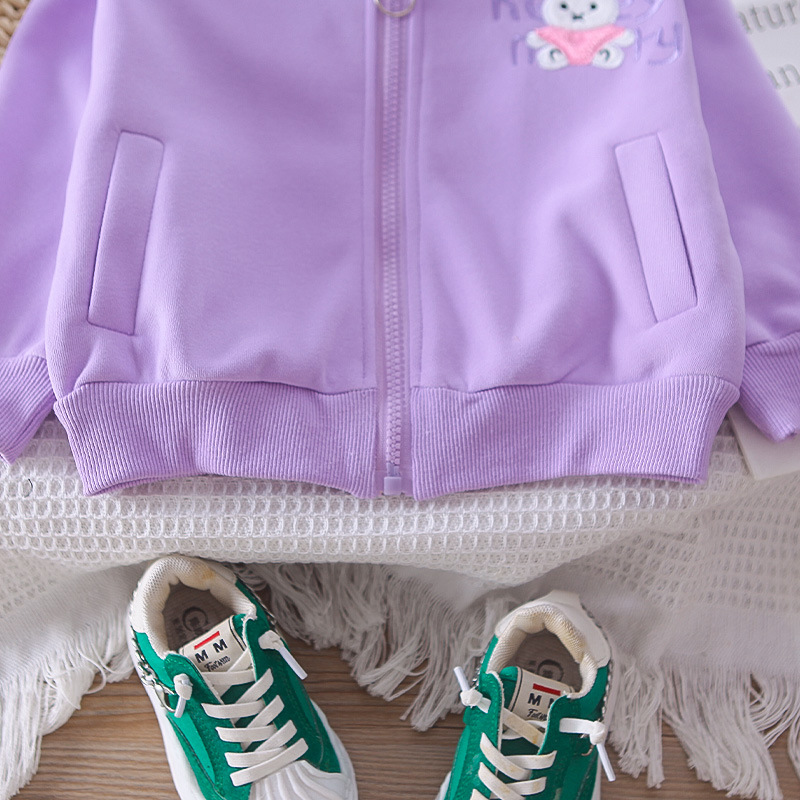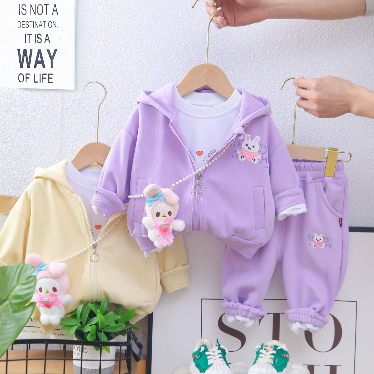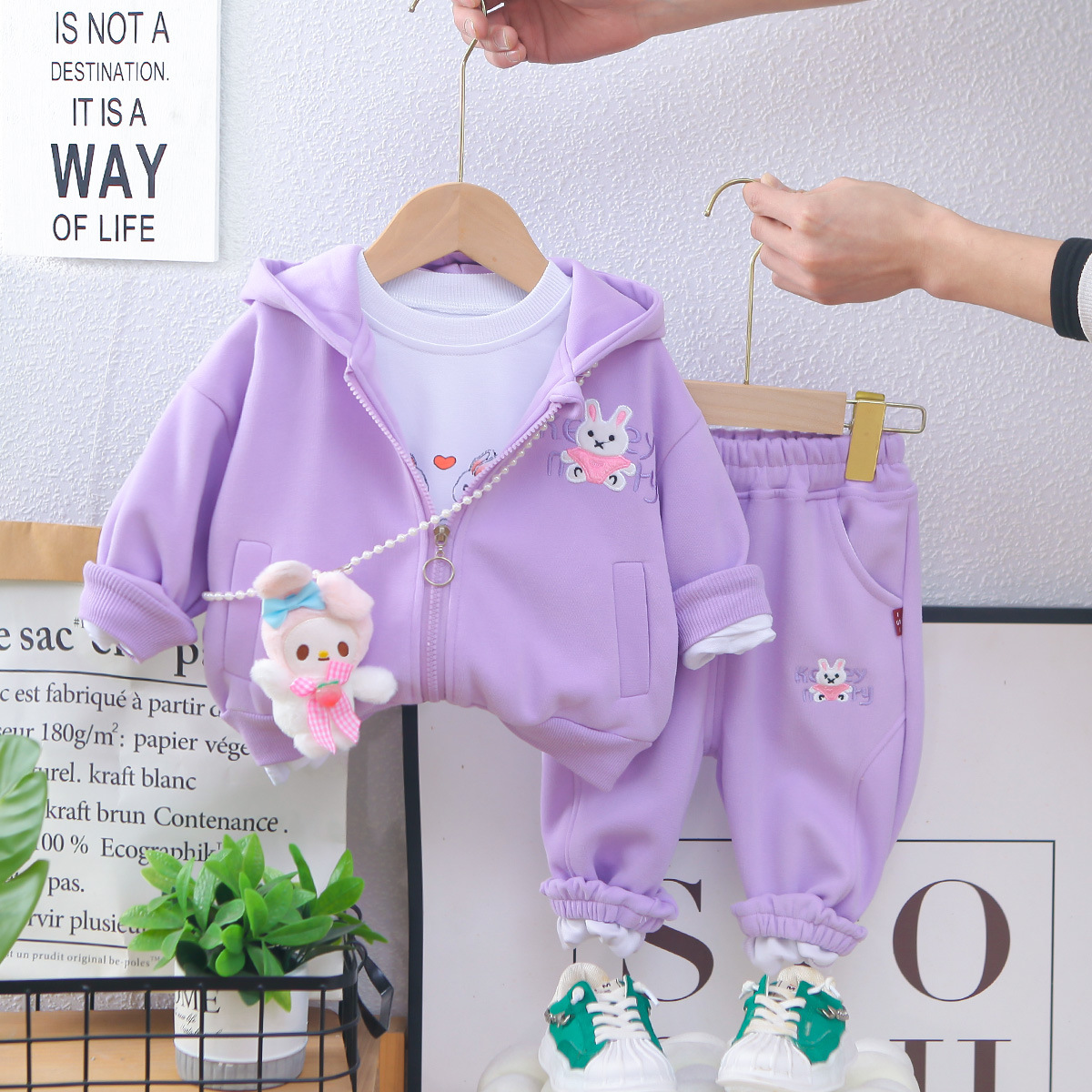 소녀 봄 세 조각 어린이 착용 아기 소녀 봄 및 가을 서양식 세트 느슨한 봄 스포츠 재킷스토어 가기