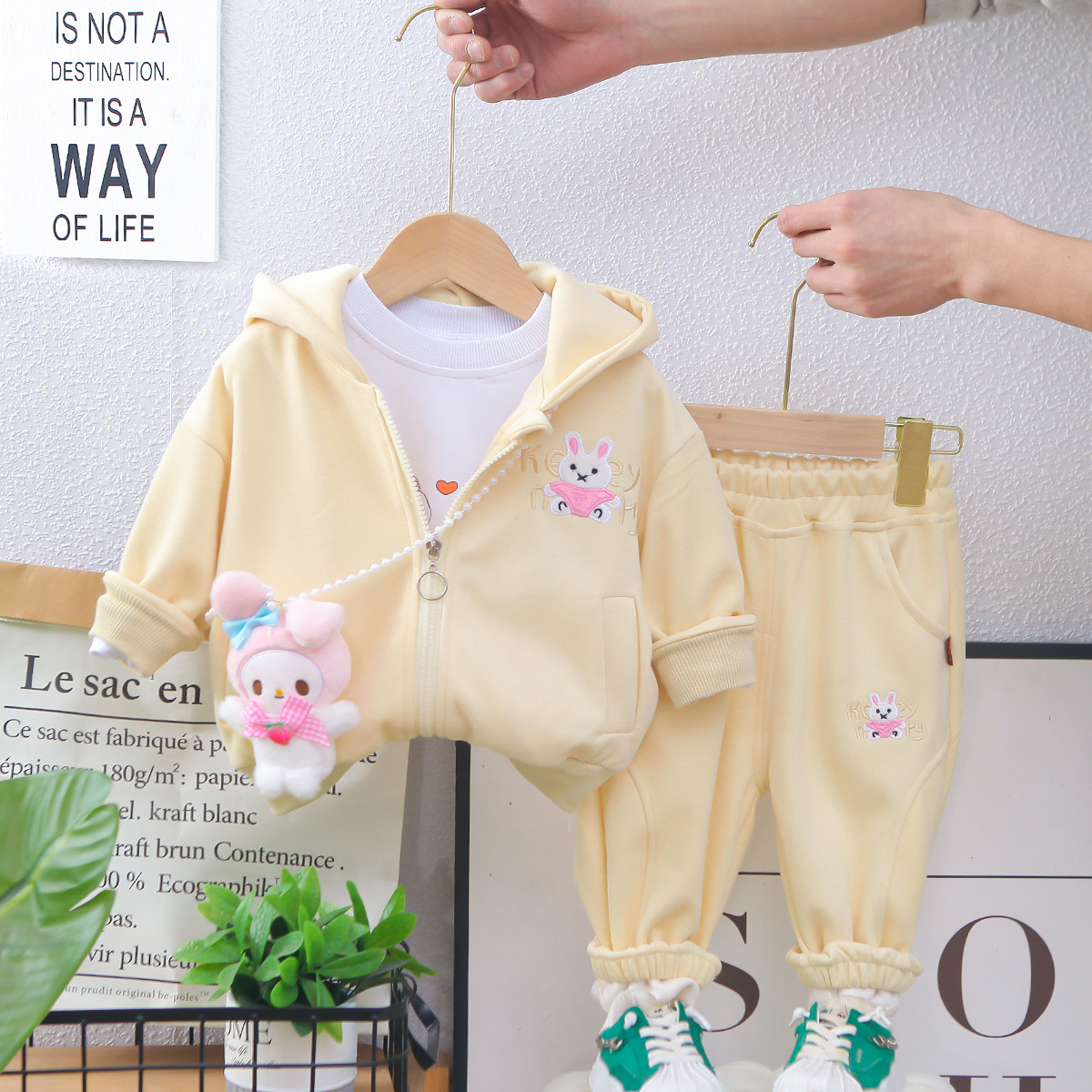 소녀 봄 세 조각 어린이 착용 아기 소녀 봄 및 가을 서양식 세트 느슨한 봄 스포츠 재킷
