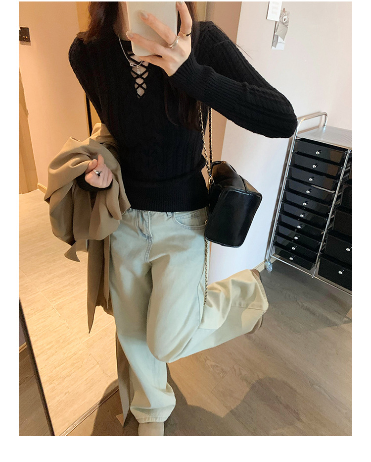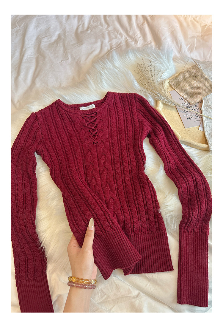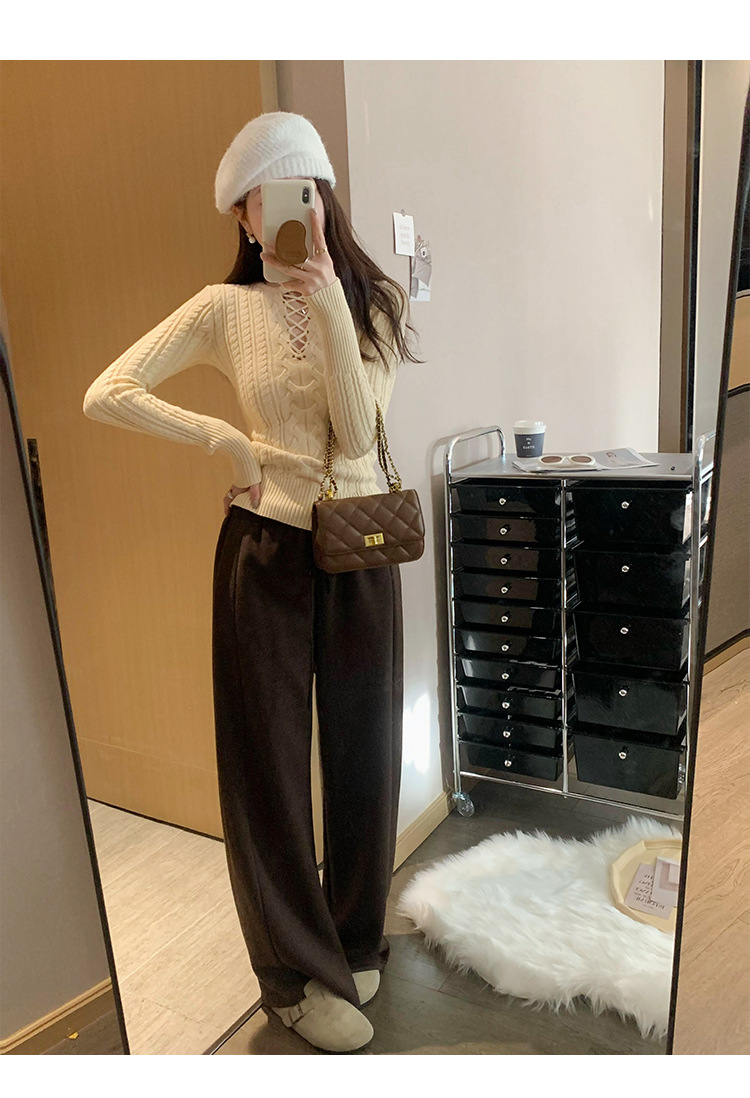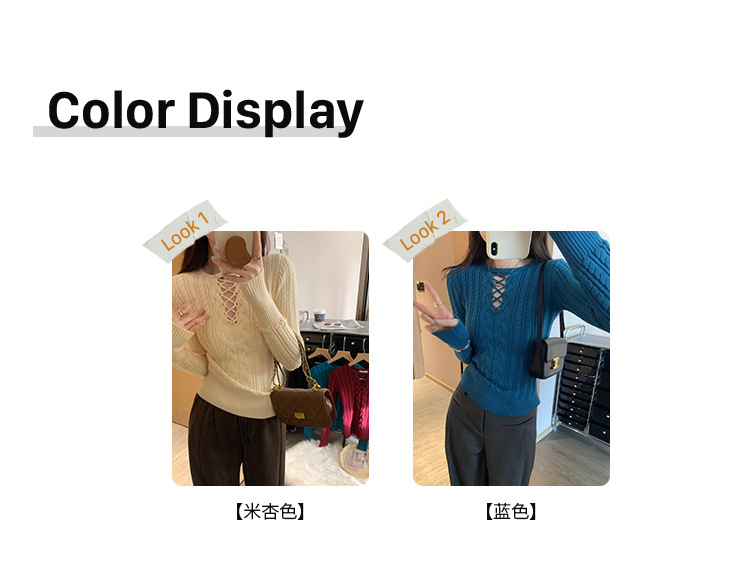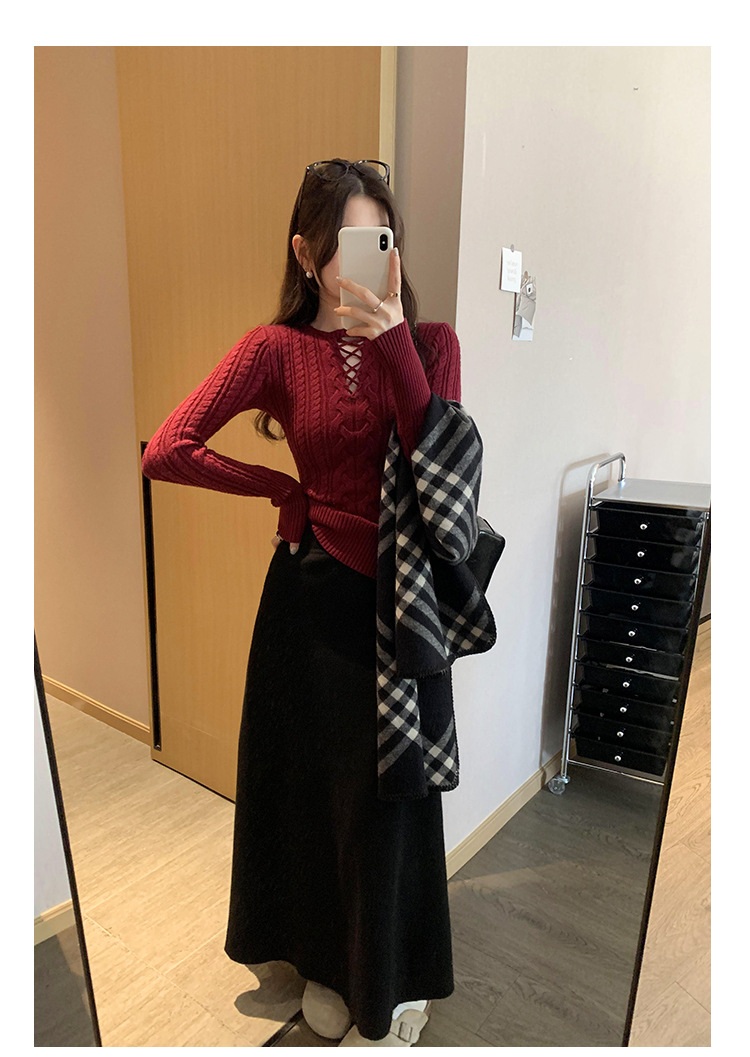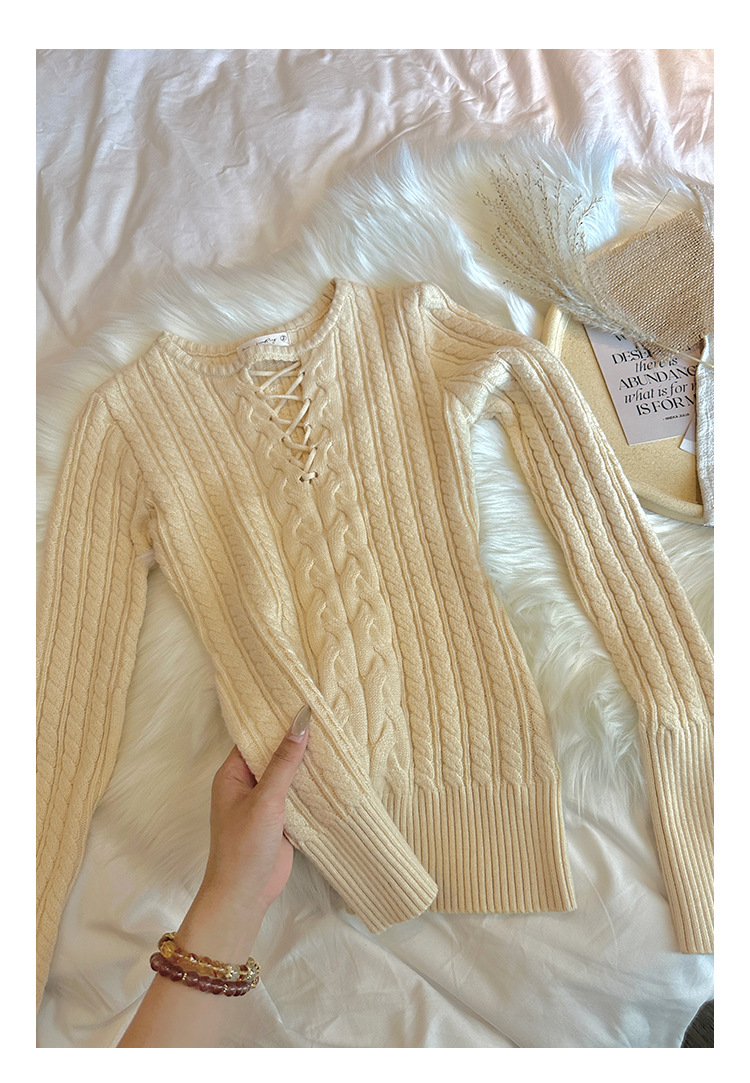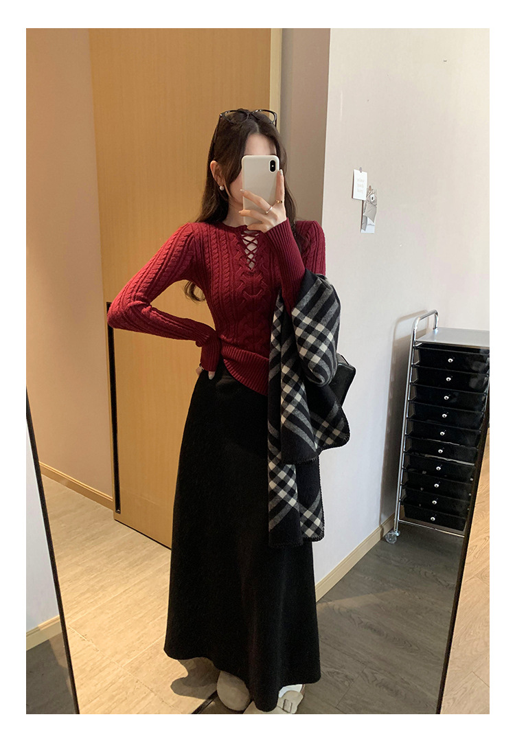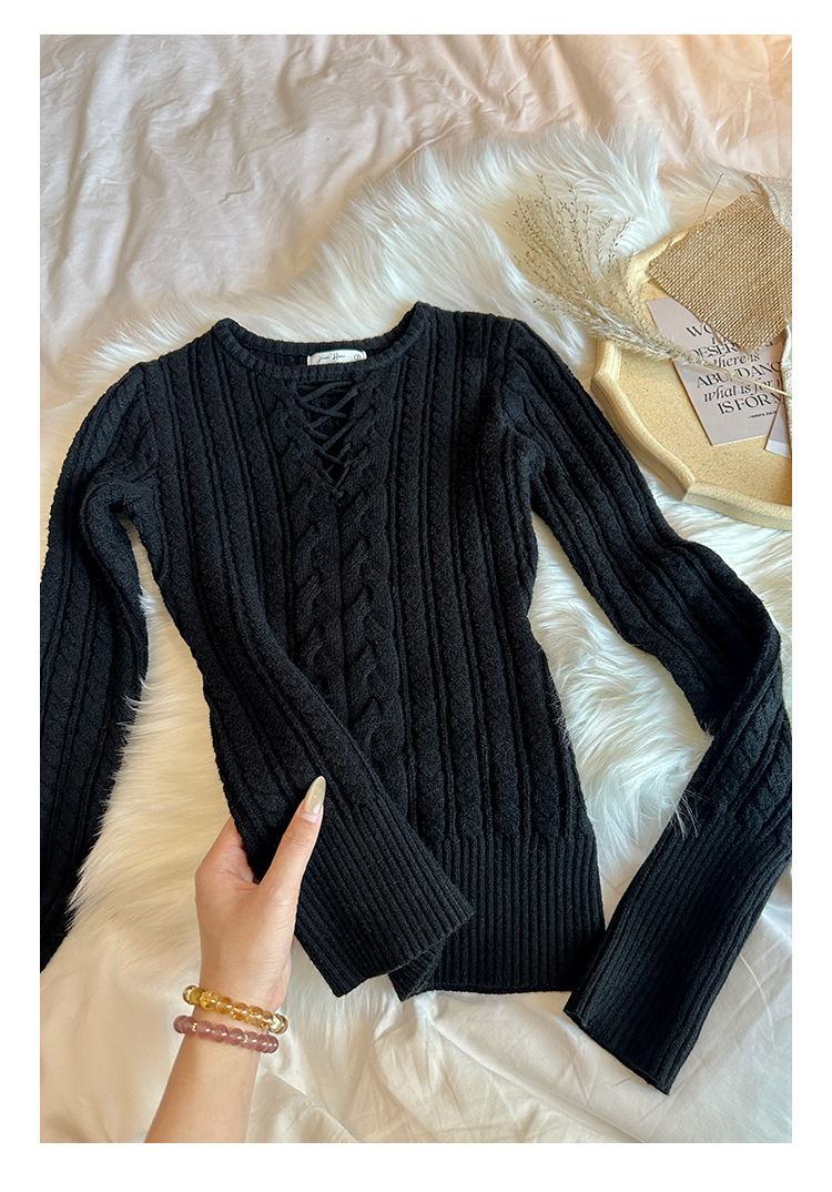 한국식 하이 엔드 할로우 아웃 내베이스 셔츠 니트 스웨터 여성용 2024 년 새 겨울 슬림 핏 트위스트 탑