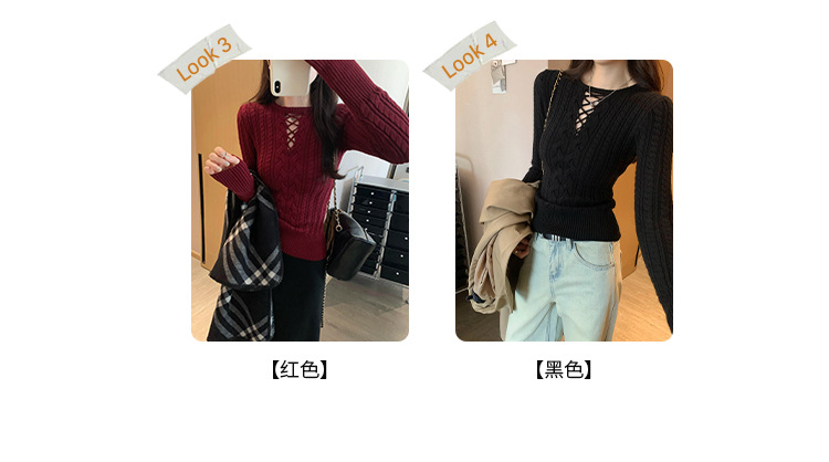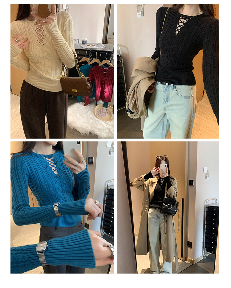 한국식 하이 엔드 할로우 아웃 내베이스 셔츠 니트 스웨터 여성용 2024 년 새 겨울 슬림 핏 트위스트 탑스토어 가기