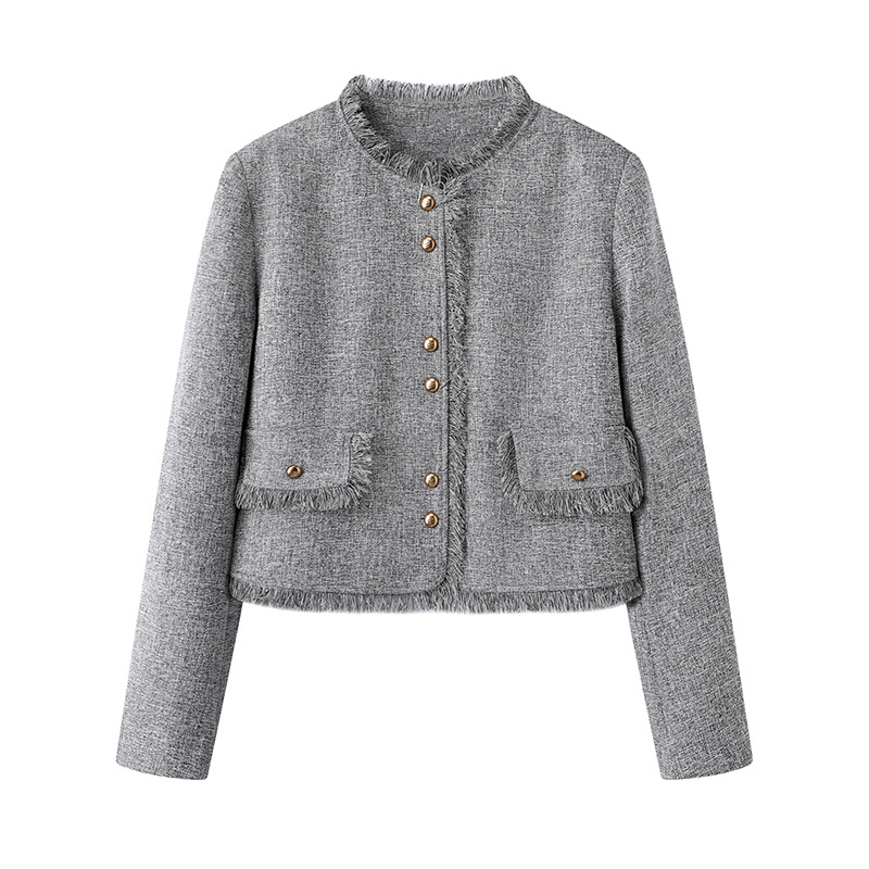 회색 스타일 착용 회색 샤넬 스타일 코트 세트 여성 2025 봄 새로운 투피스 T851088300