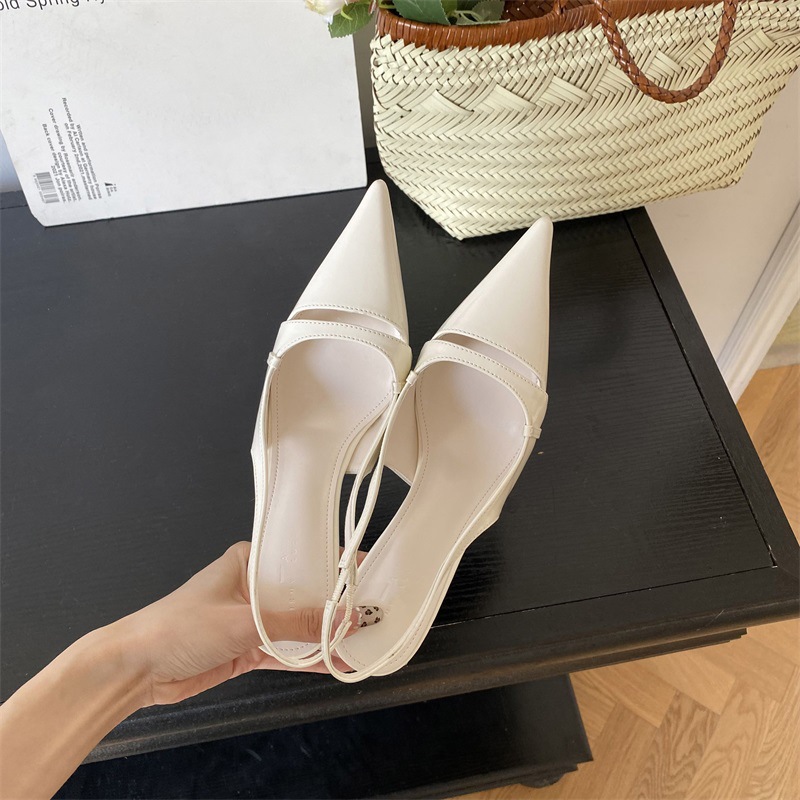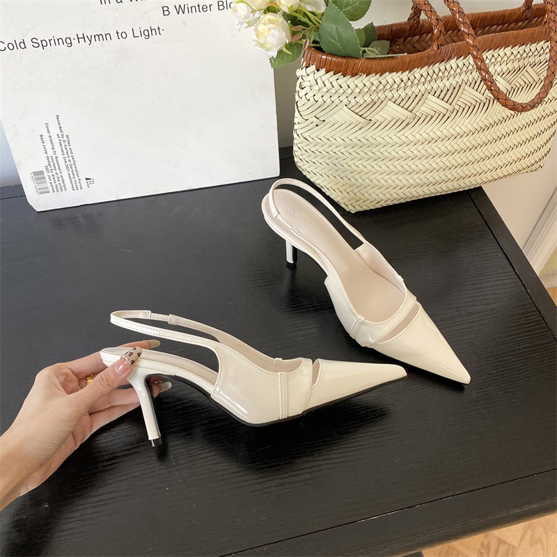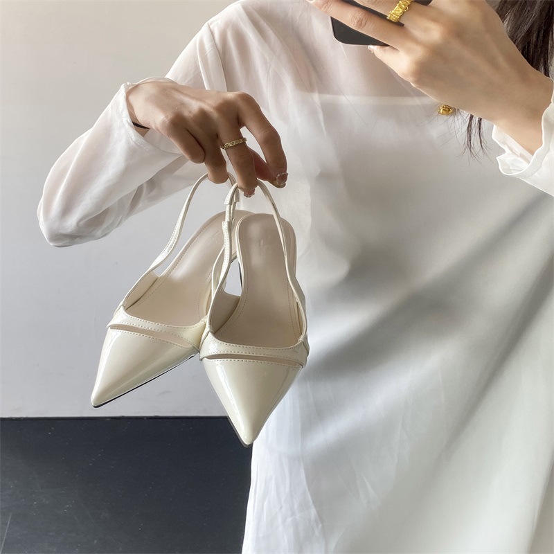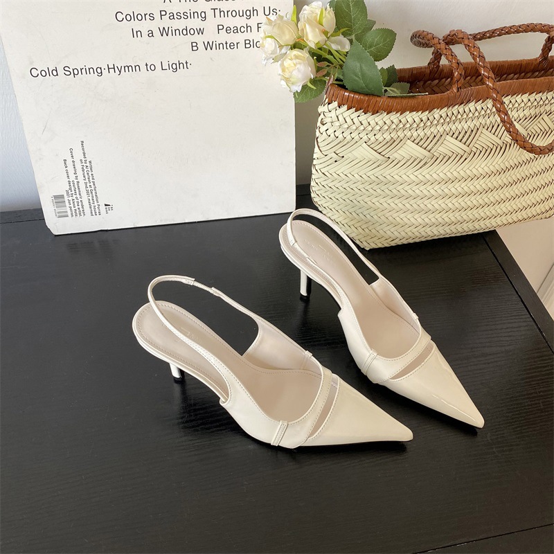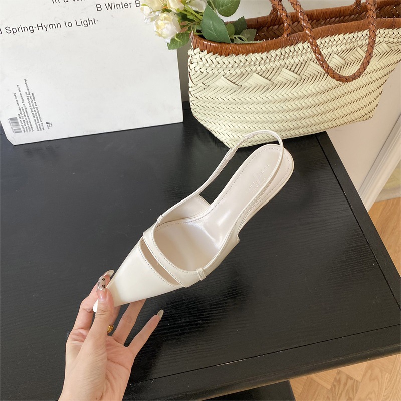 프랑스 스타일의 뾰족한 발가락 하이힐 샌들 스커트 백 스트랩 얕은 싱글 레이어 신발 2024 봄과 여름 한국식 여성 신발스토어 가기