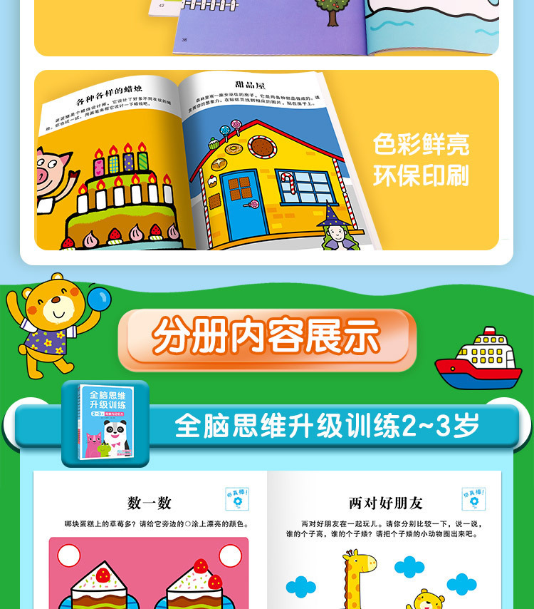 전체 뇌 생각 좌우 뇌 발달 2-3 세 아기 어린이 교육 훈련 작은 홍화 조기 교육 게임 책스토어 가기