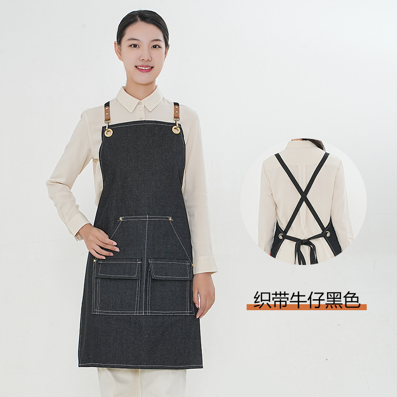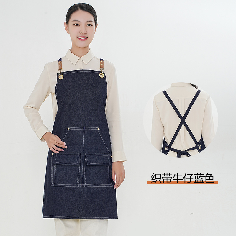 아마존 데님 작업 앞치마 여성 바리스타 케이터링 우유 차 가게 두꺼운 캔버스 남성 이발사 웨이터 앞치마