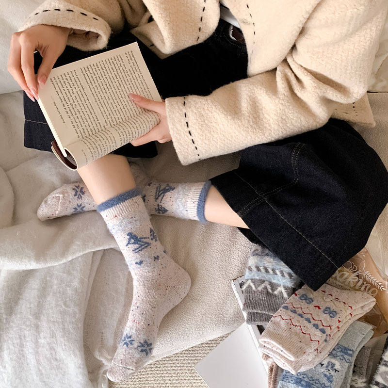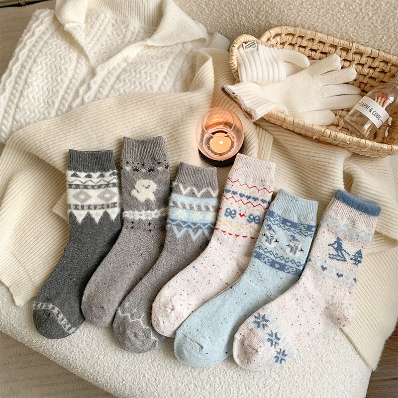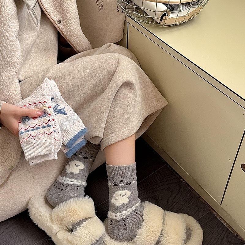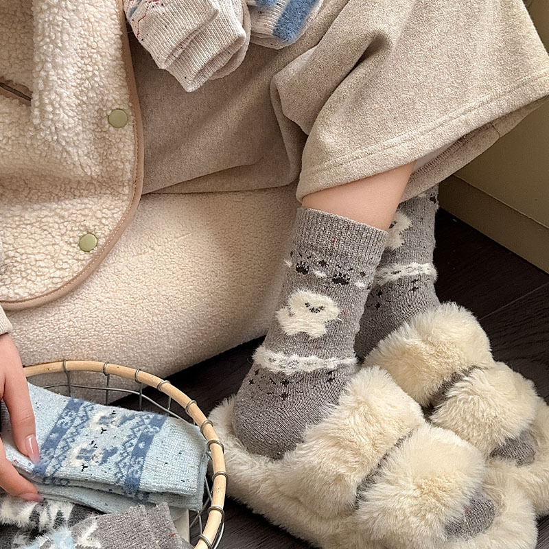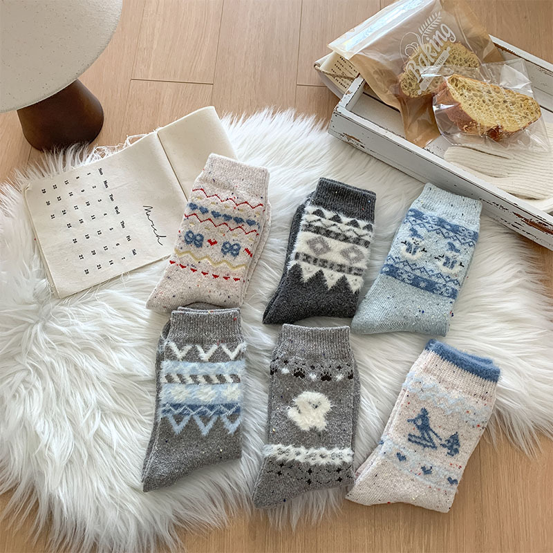 일본식 만화 강아지 양말 여성의 가을과 겨울 두꺼운 따뜻한 중간 양말 인 빈티지 간단한 음란 양모 양말스토어 가기