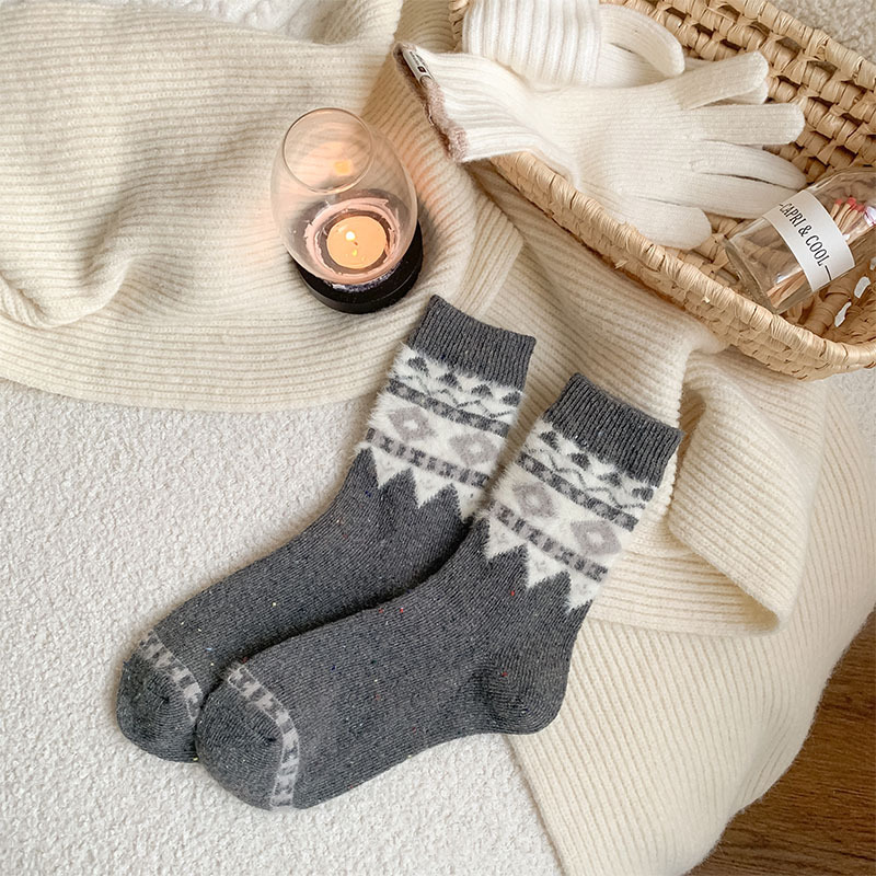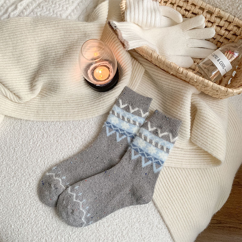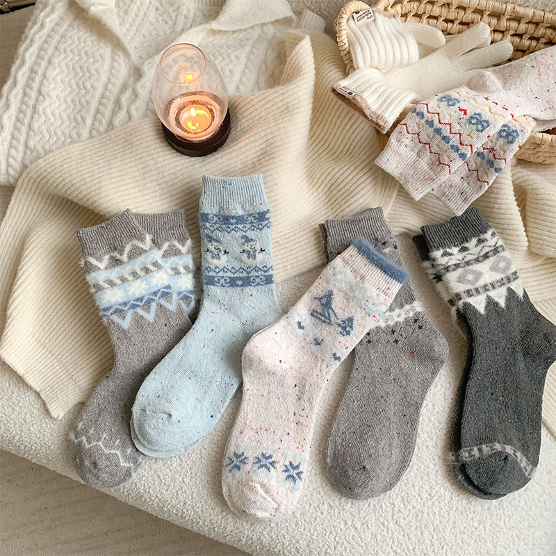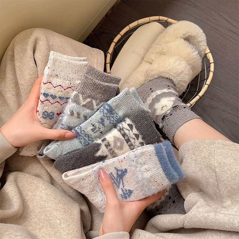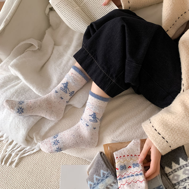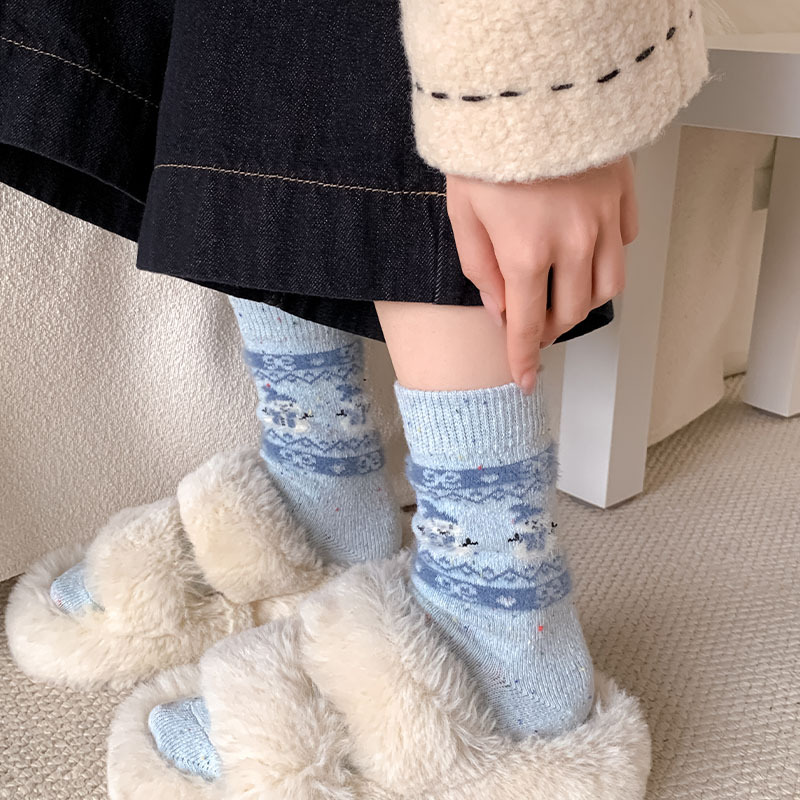 일본식 만화 강아지 양말 여성의 가을과 겨울 두꺼운 따뜻한 중간 양말 인 빈티지 간단한 음란 양모 양말스토어 가기