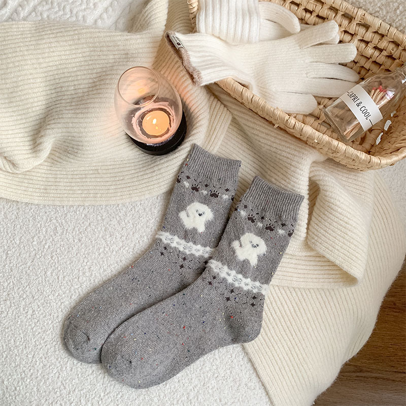 일본식 만화 강아지 양말 여성의 가을과 겨울 두꺼운 따뜻한 중간 양말 인 빈티지 간단한 음란 양모 양말