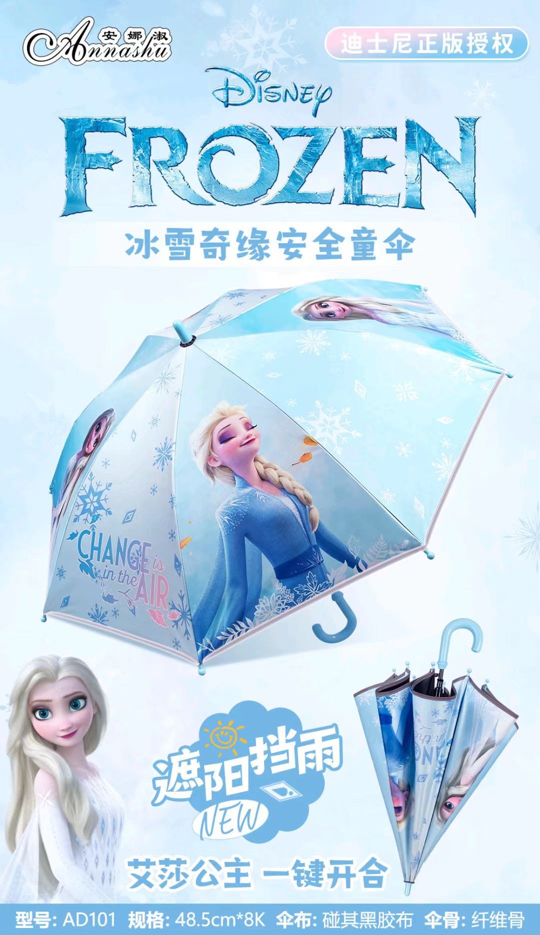 정품 엘사 어린이 우산 안전 우산 선 스크린 UV 보호 자동 반사 스트립 측면 안전 우산