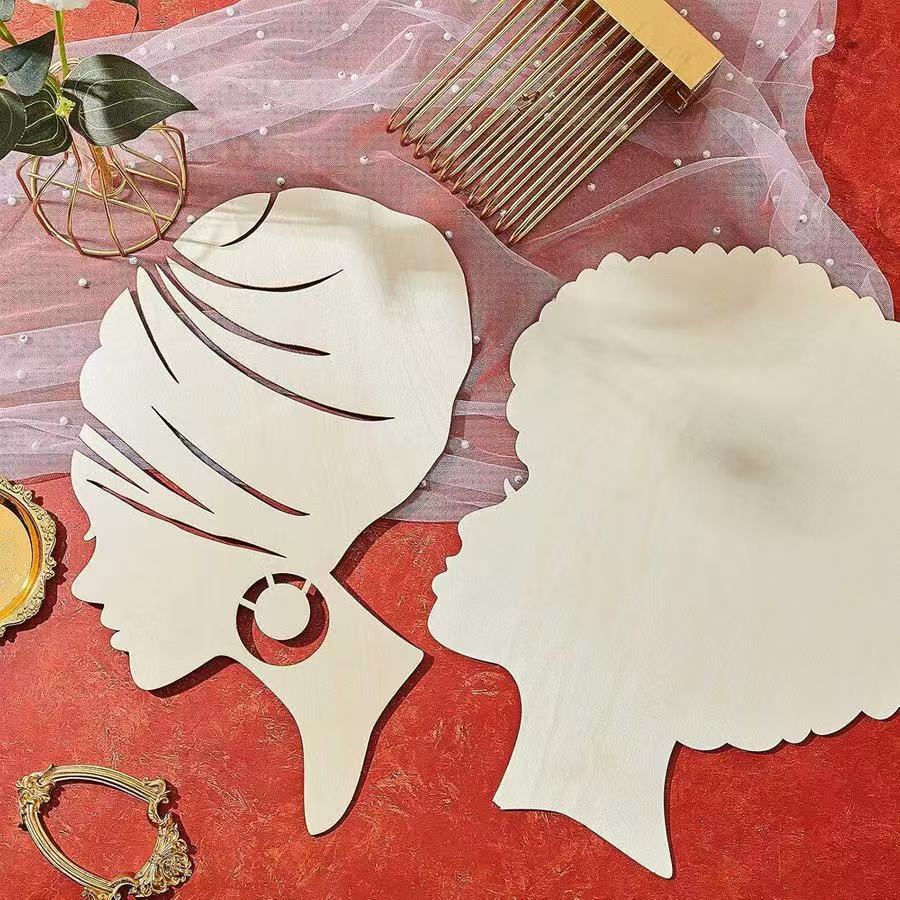 국경 간 창조적 인 아프리카 소녀 어머니의 날 나무 칩 도매 DIY 문 벽 교수형 그림 낙서 보드스토어 가기