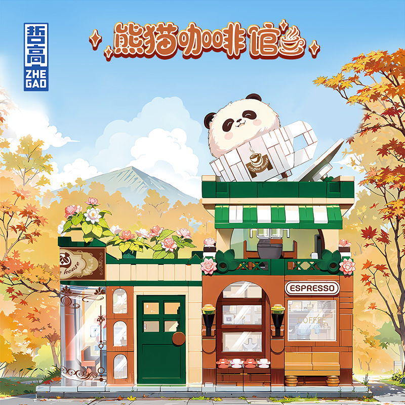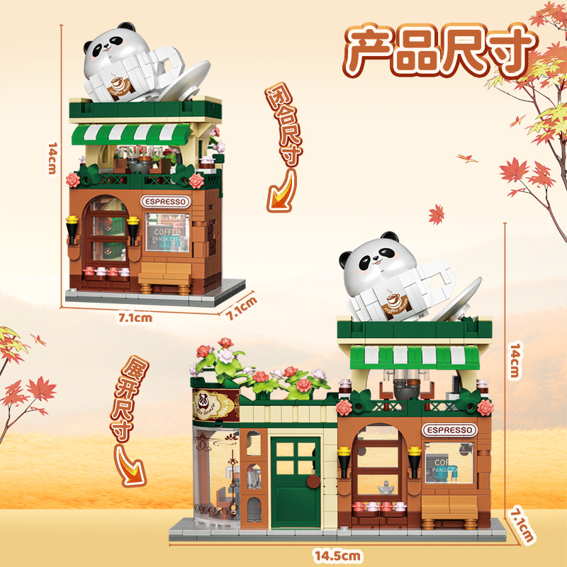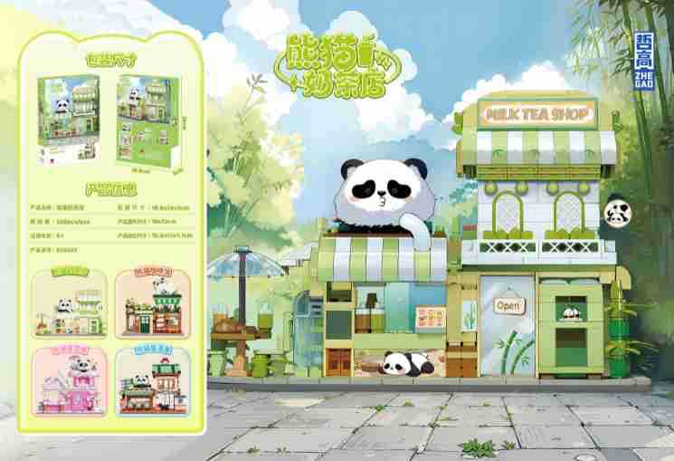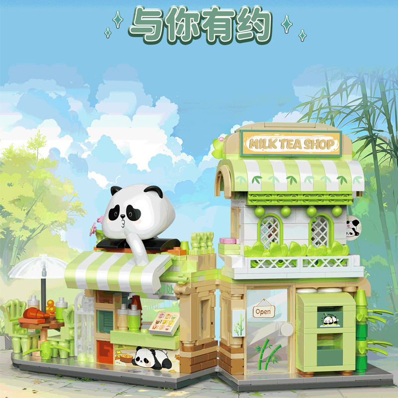 [도매 세대] 팬더 우유 차 가게 Mixuecheng 퍼즐 블록 레고 장식품 어린이 장난감 선물 호환