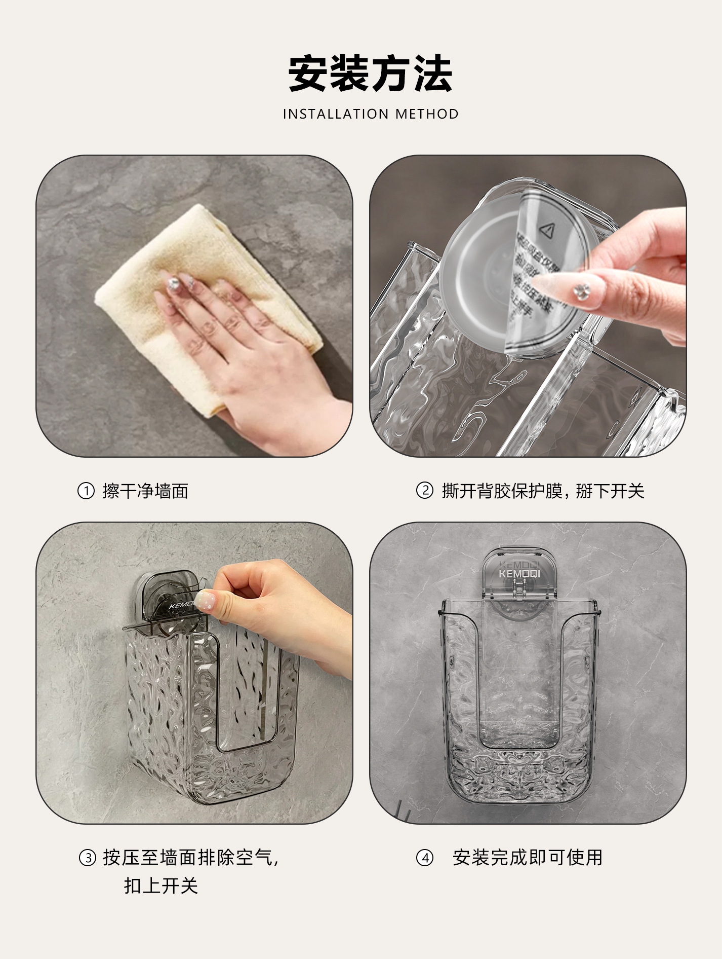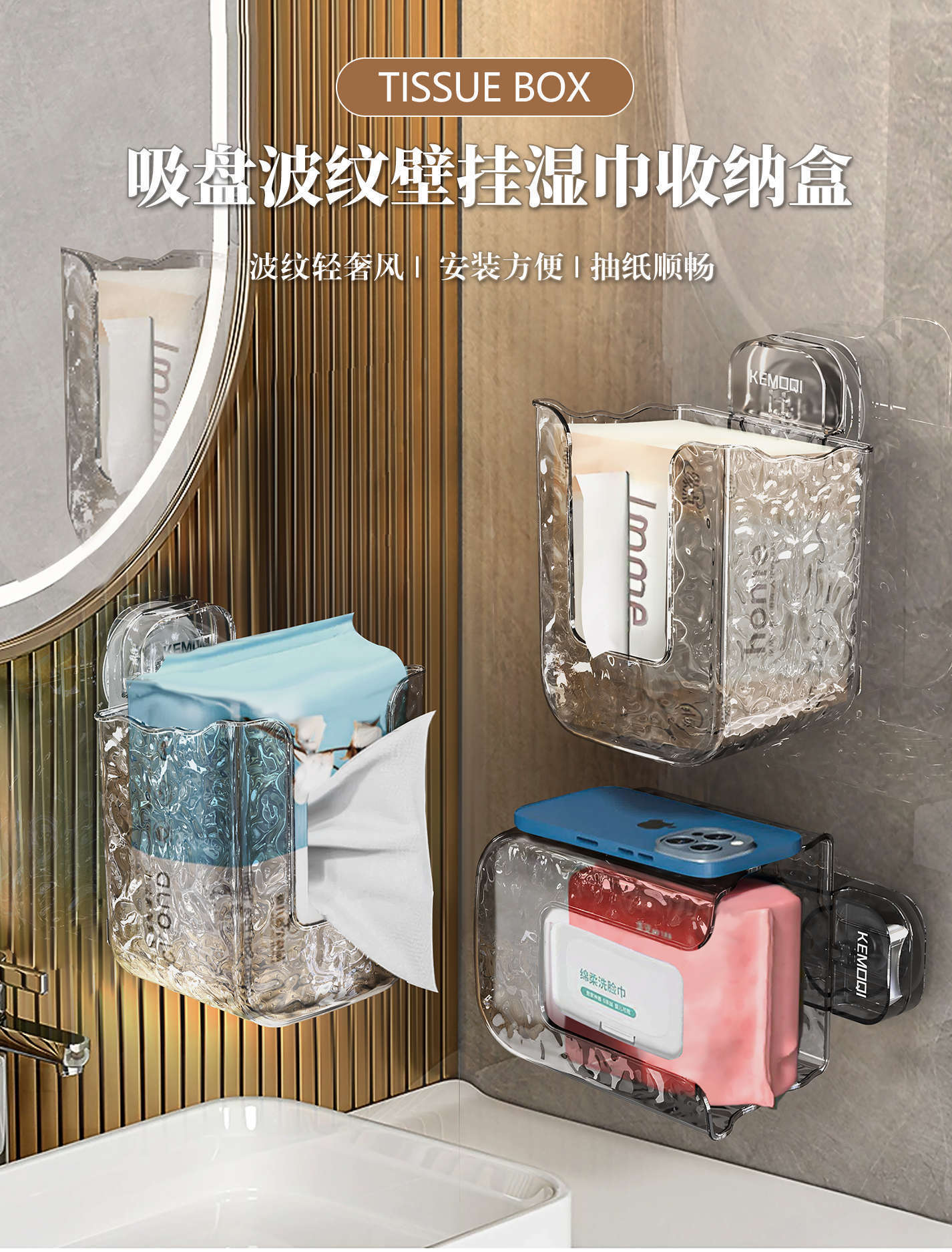 물 리플 라이트 럭셔리 흡입 컵 물티슈 스토리지 박스 펀치 무료 화장실 벽걸이 종이 상자 다기능 물티슈 박스스토어 가기