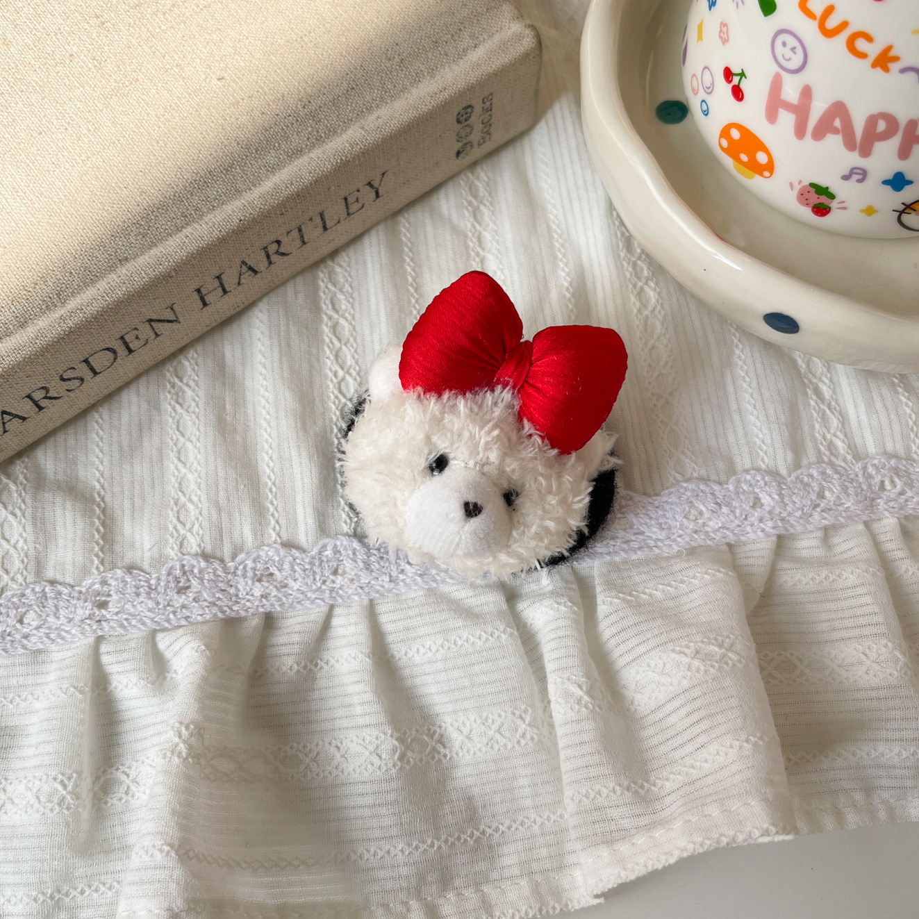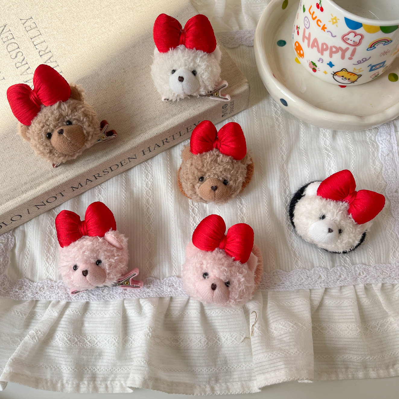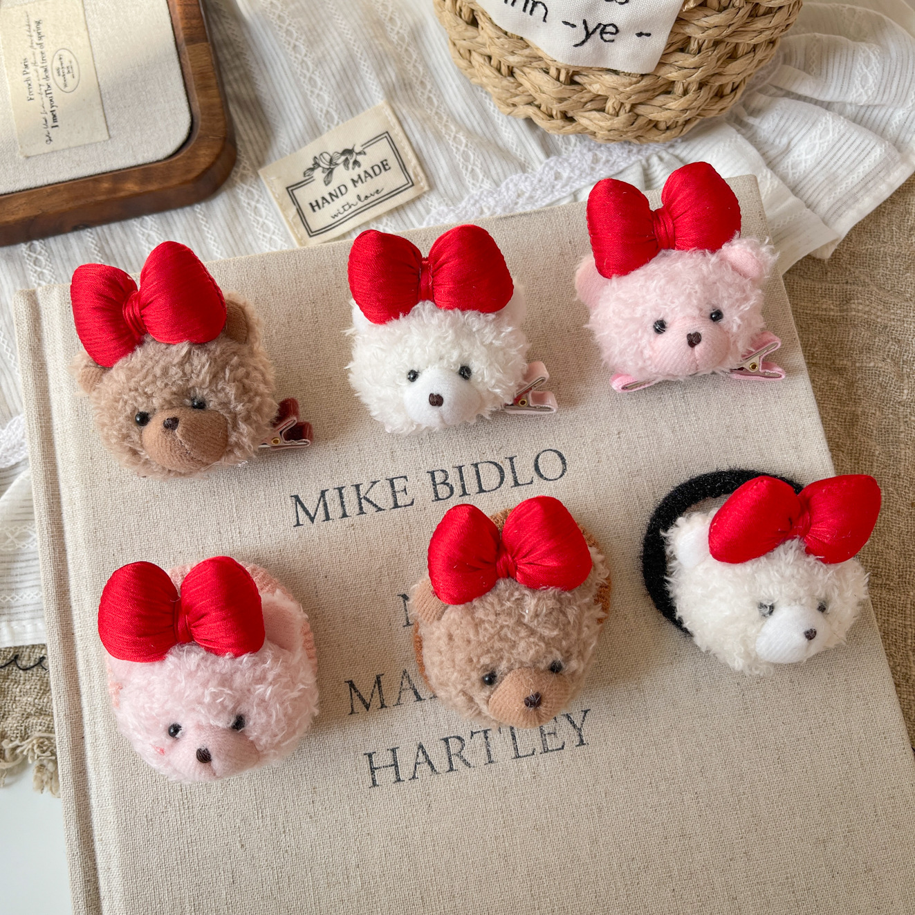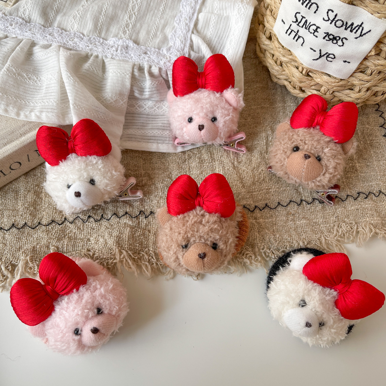 새로운 빨간 나비 넥타이 곰 어린이 헤어 클립 봉제 인형 헤어 링 새해 축제 헤어 액세서리 헤어 로프 귀여운 헤어핀