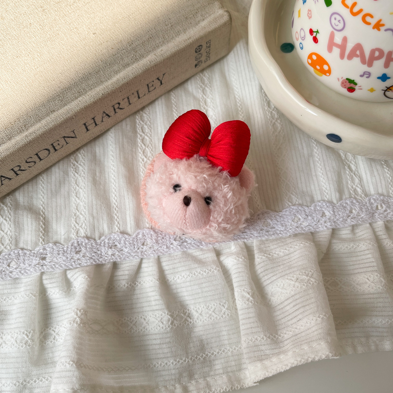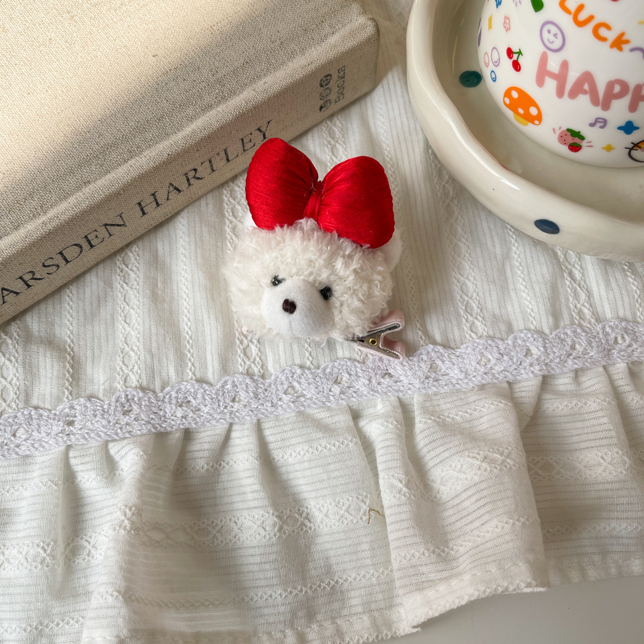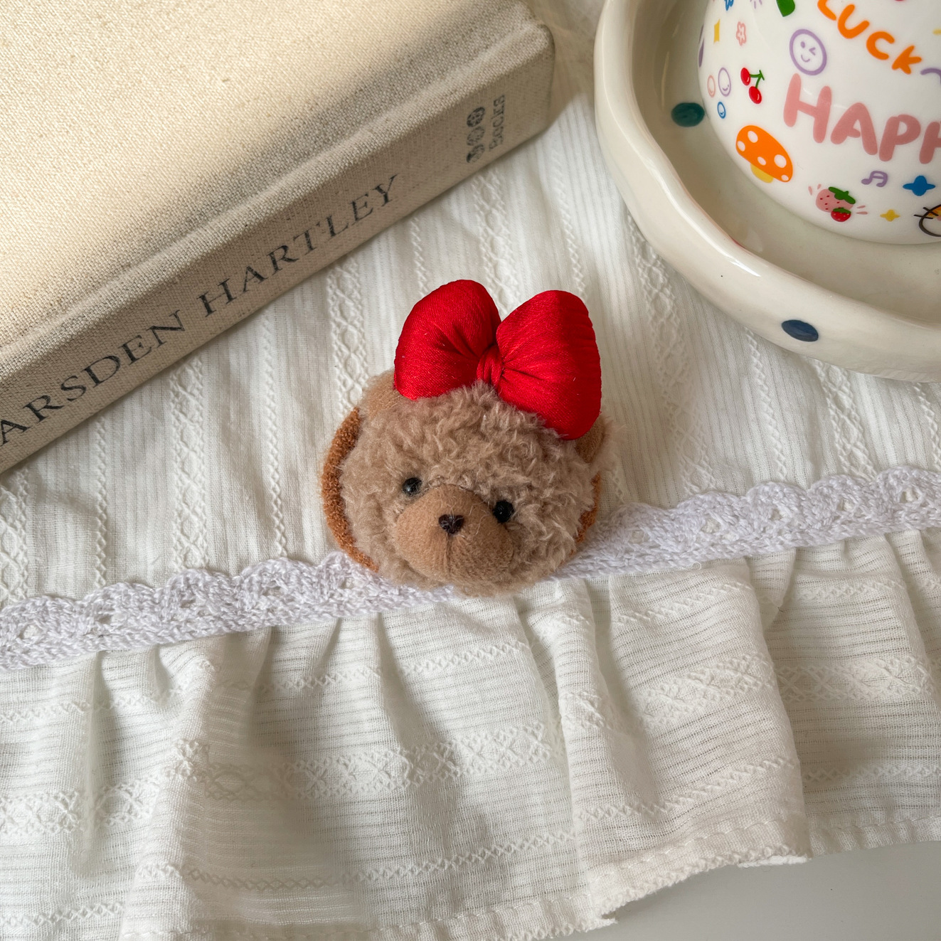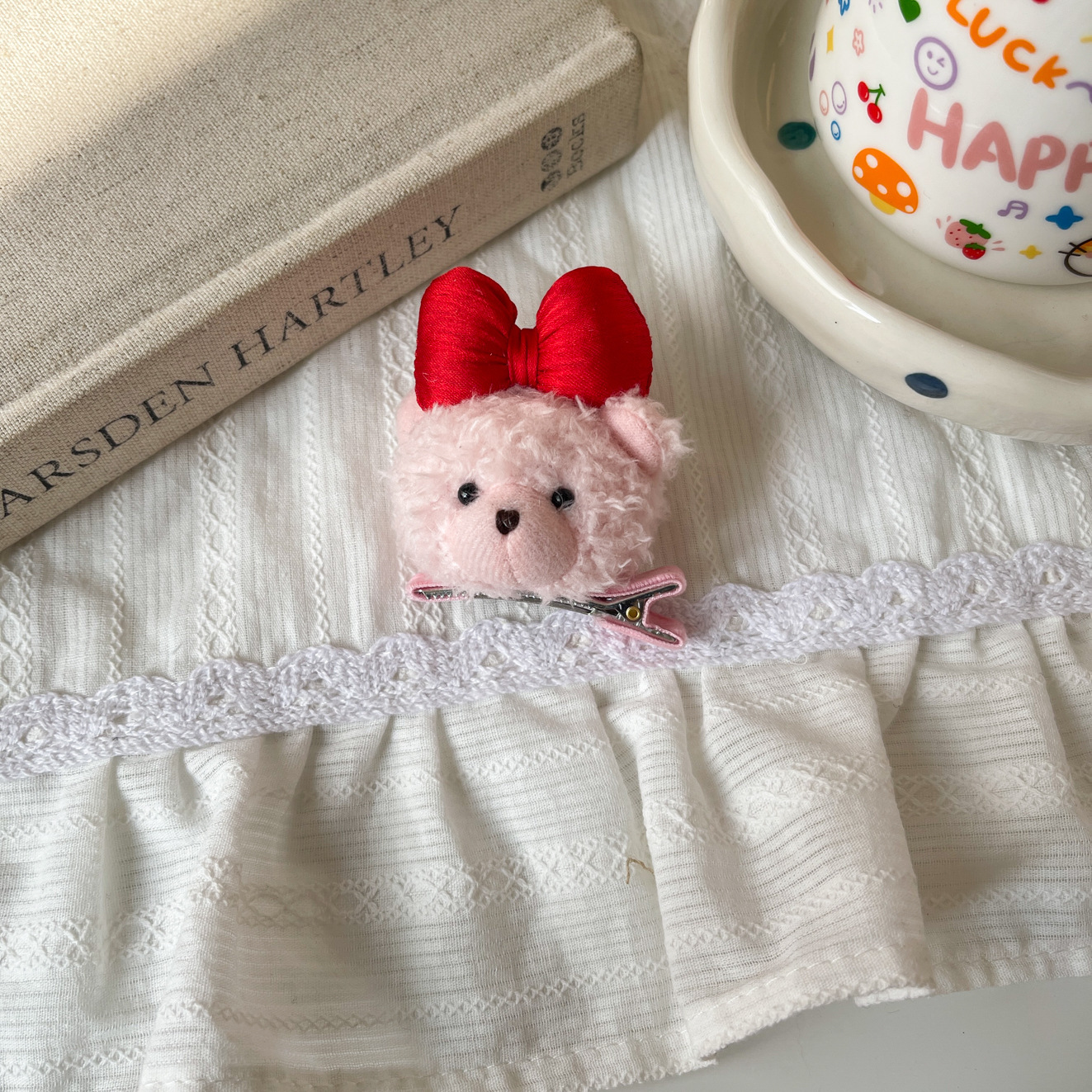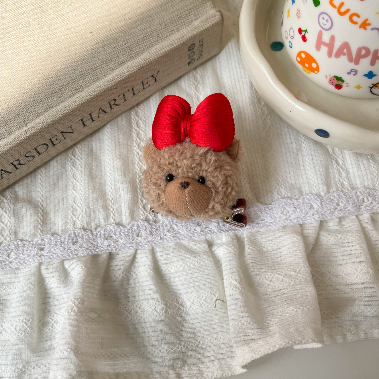 새로운 빨간 나비 넥타이 곰 어린이 헤어 클립 봉제 인형 헤어 링 새해 축제 헤어 액세서리 헤어 로프 귀여운 헤어핀