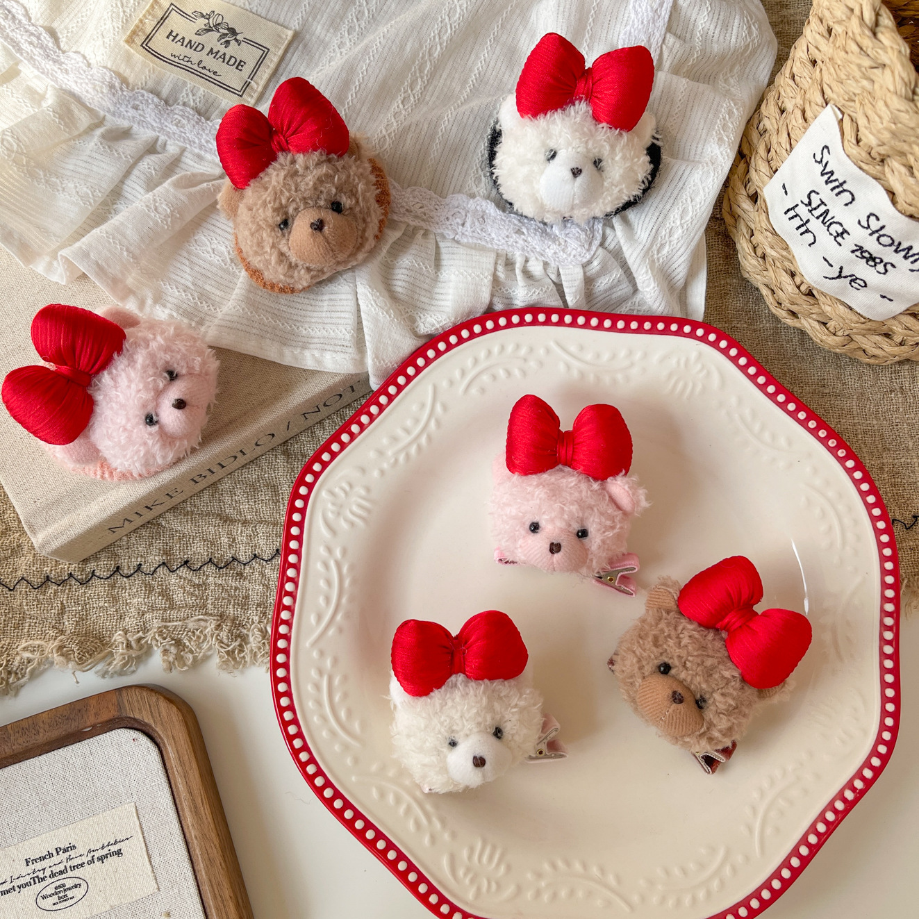 새로운 빨간 나비 넥타이 곰 어린이 헤어 클립 봉제 인형 헤어 링 새해 축제 헤어 액세서리 헤어 로프 귀여운 헤어핀스토어 가기