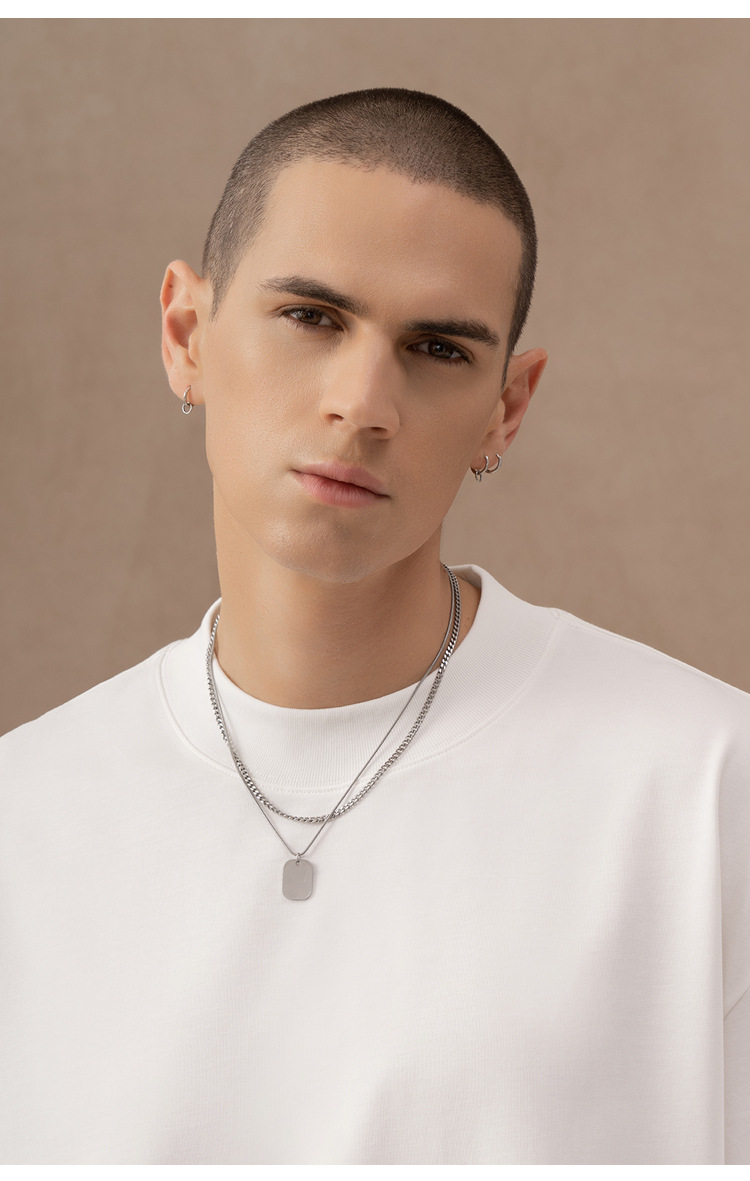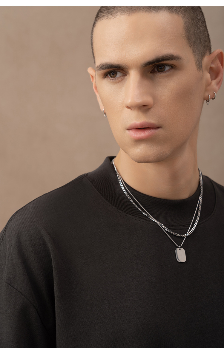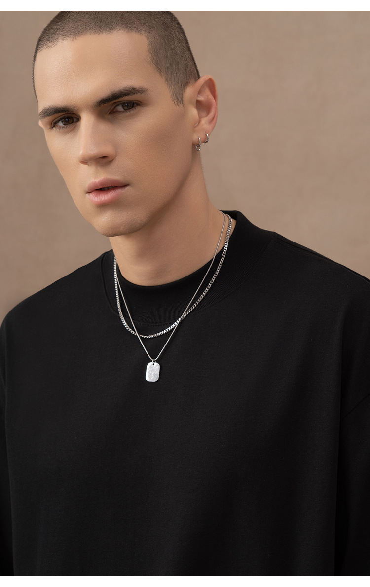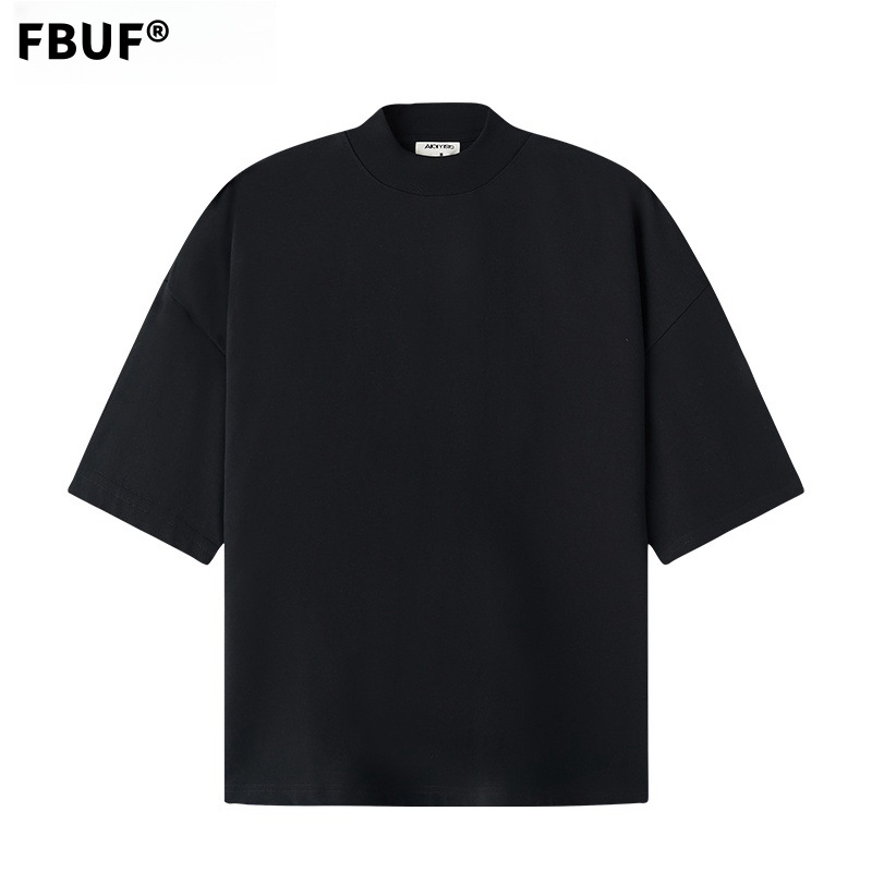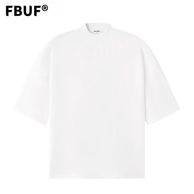 310g 반 높은 목 프로필 티셔츠 짧은 소매 남성용 무거운 느슨한 어깨 미니멀리스트 퓨어 컬러 코튼 인테리어 특대
