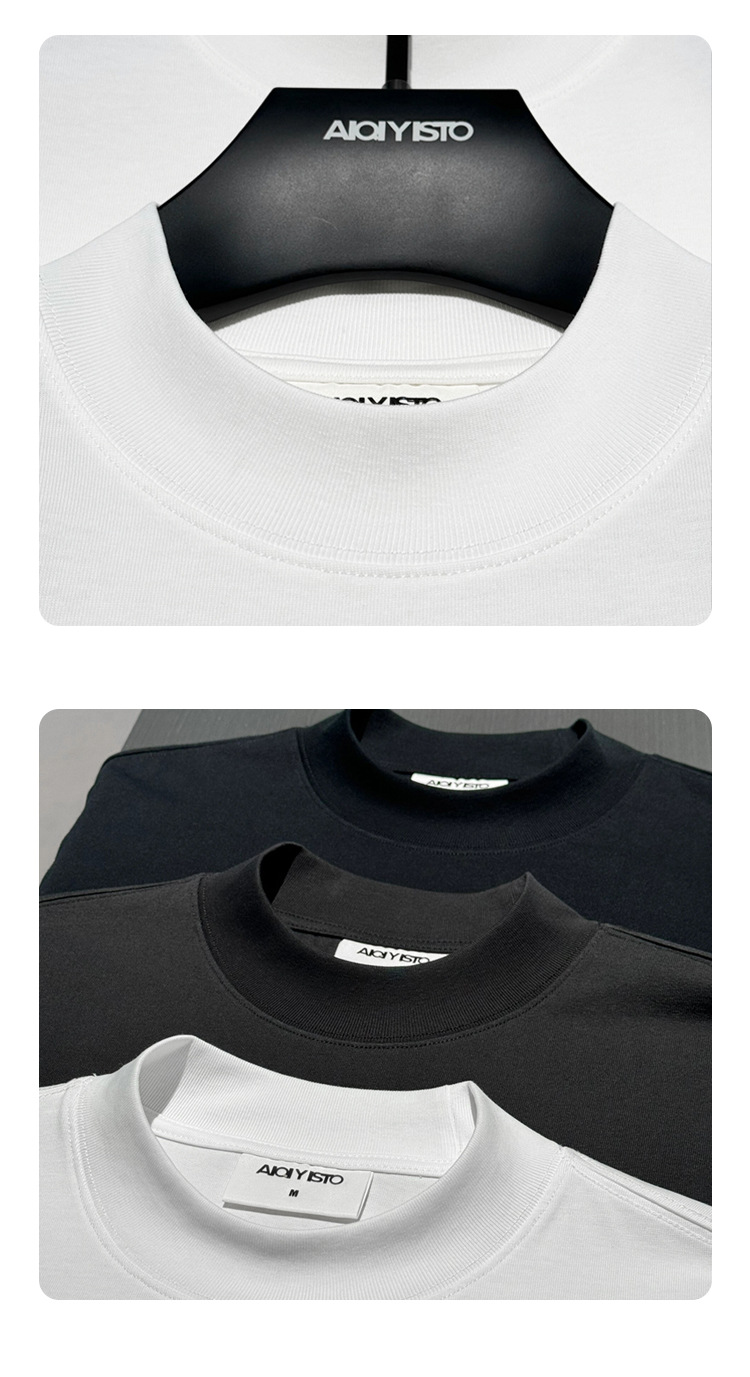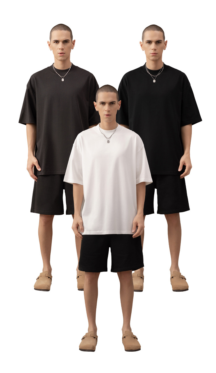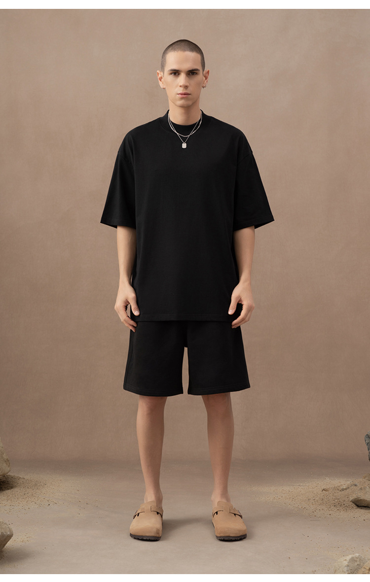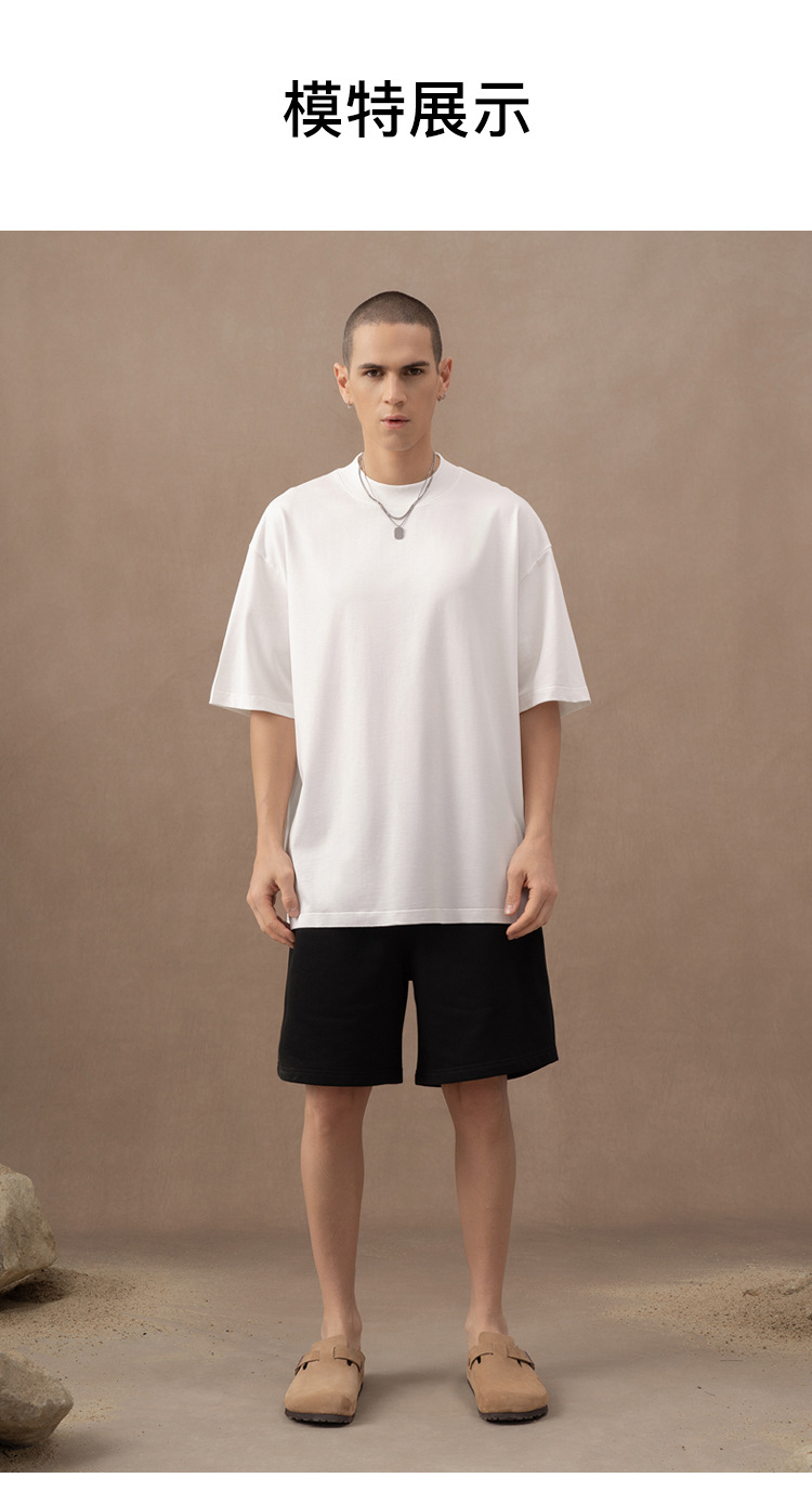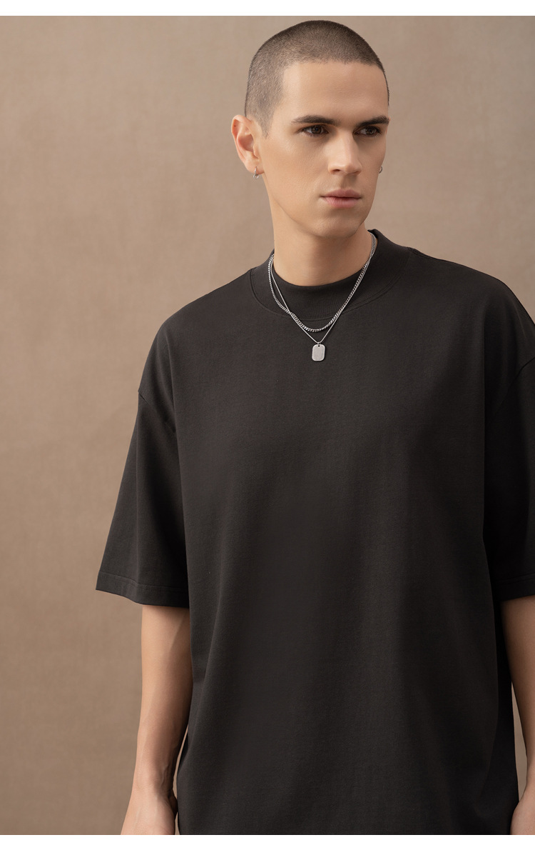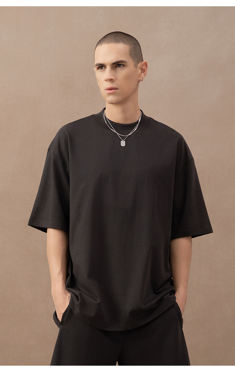 310g 반 높은 목 프로필 티셔츠 짧은 소매 남성용 무거운 느슨한 어깨 미니멀리스트 퓨어 컬러 코튼 인테리어 특대스토어 가기
