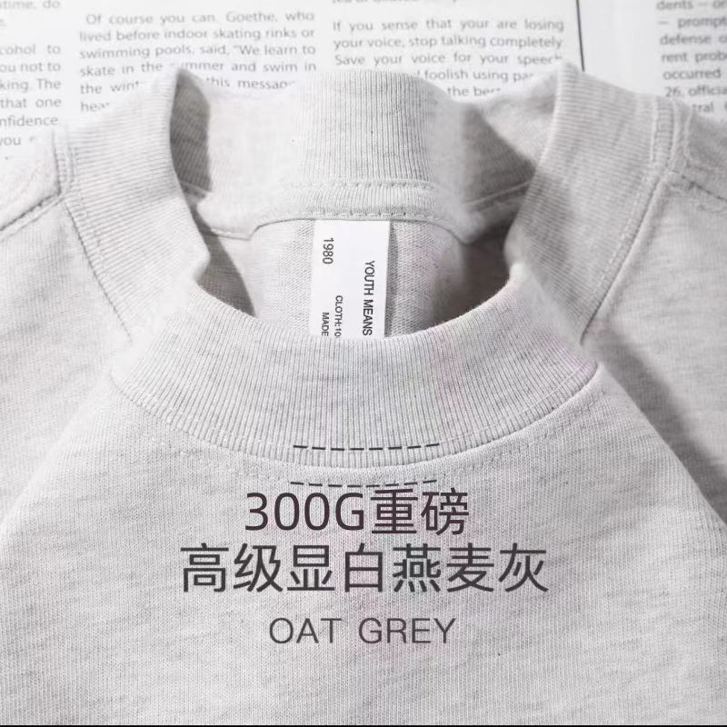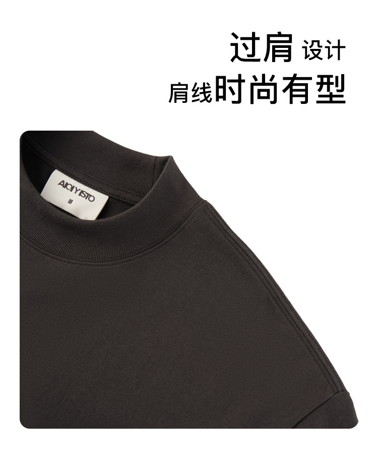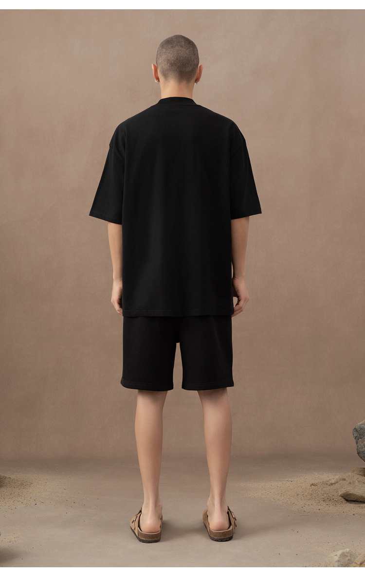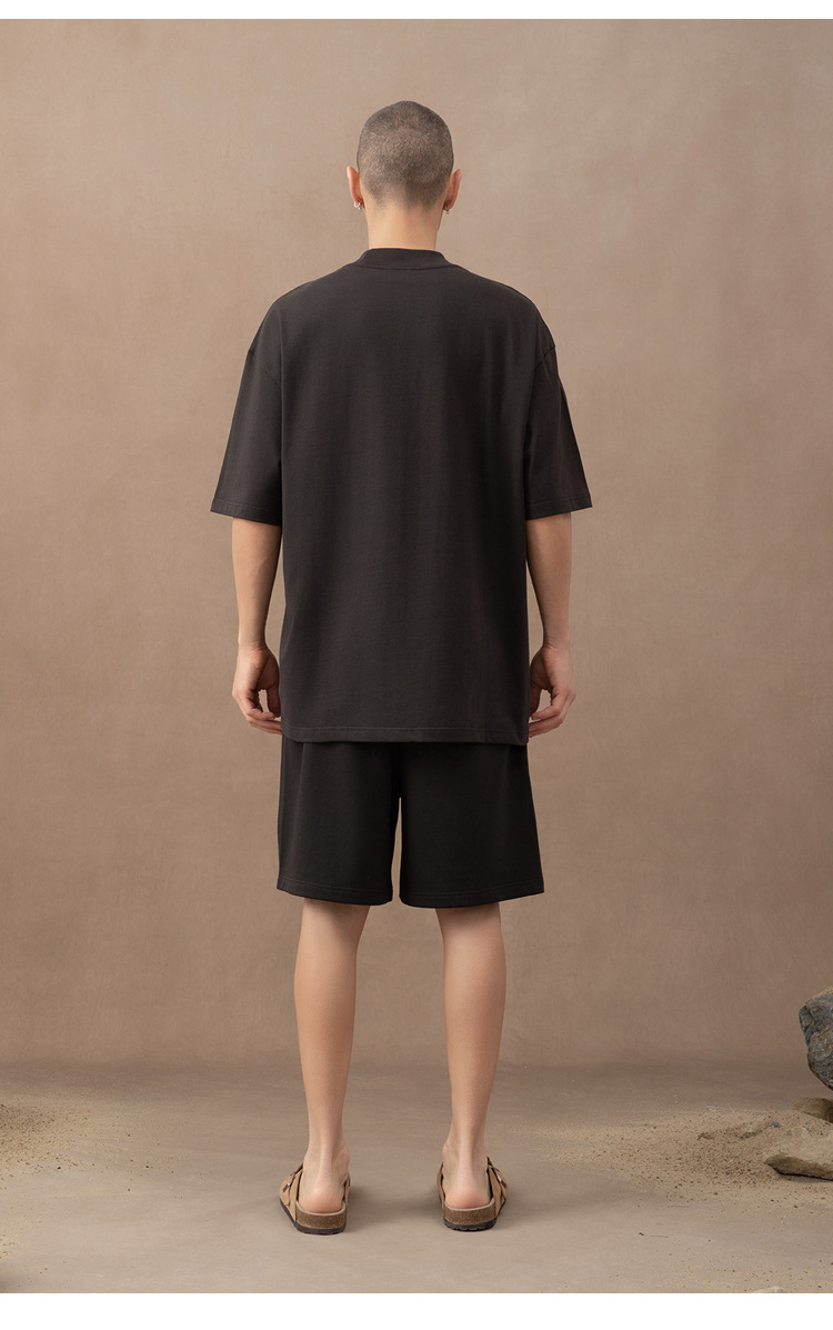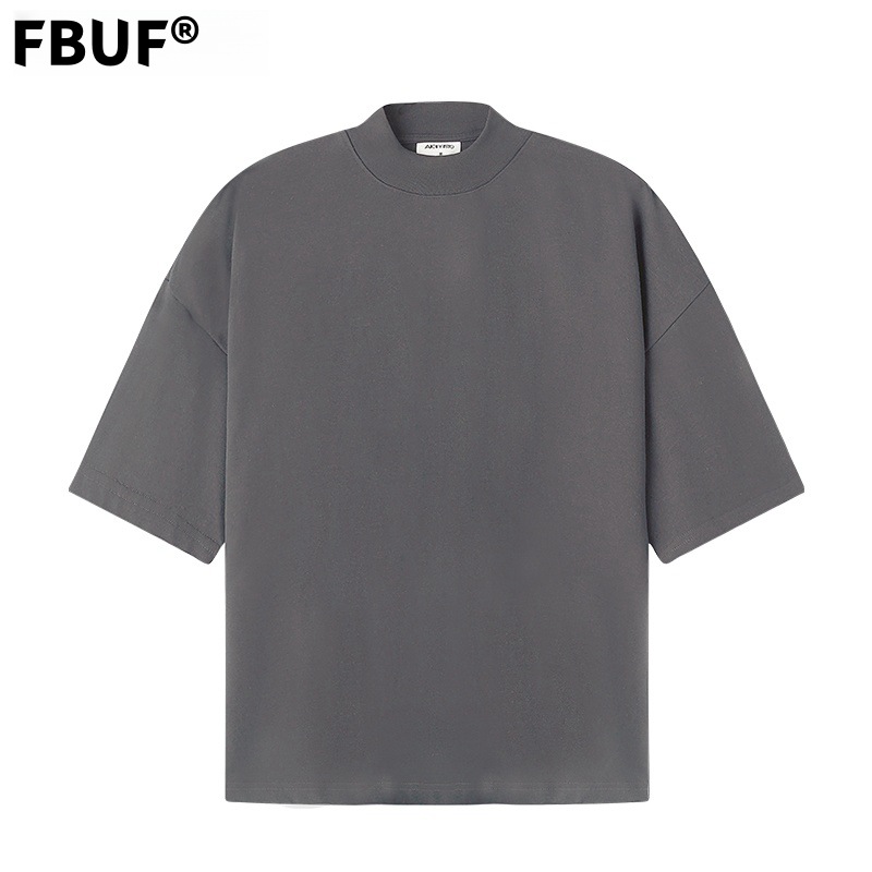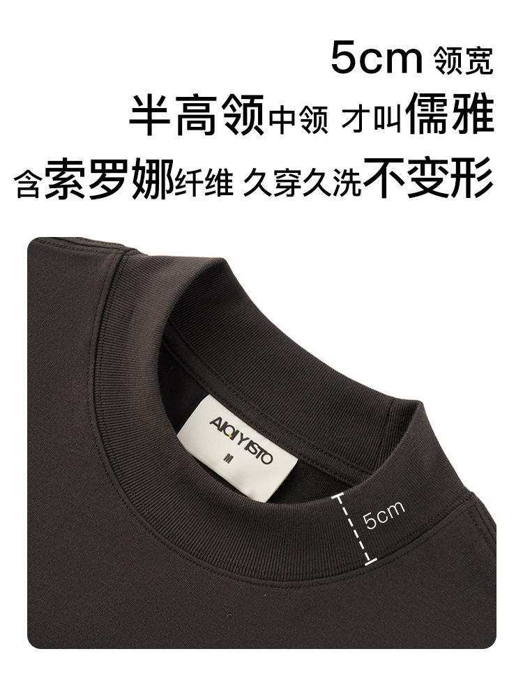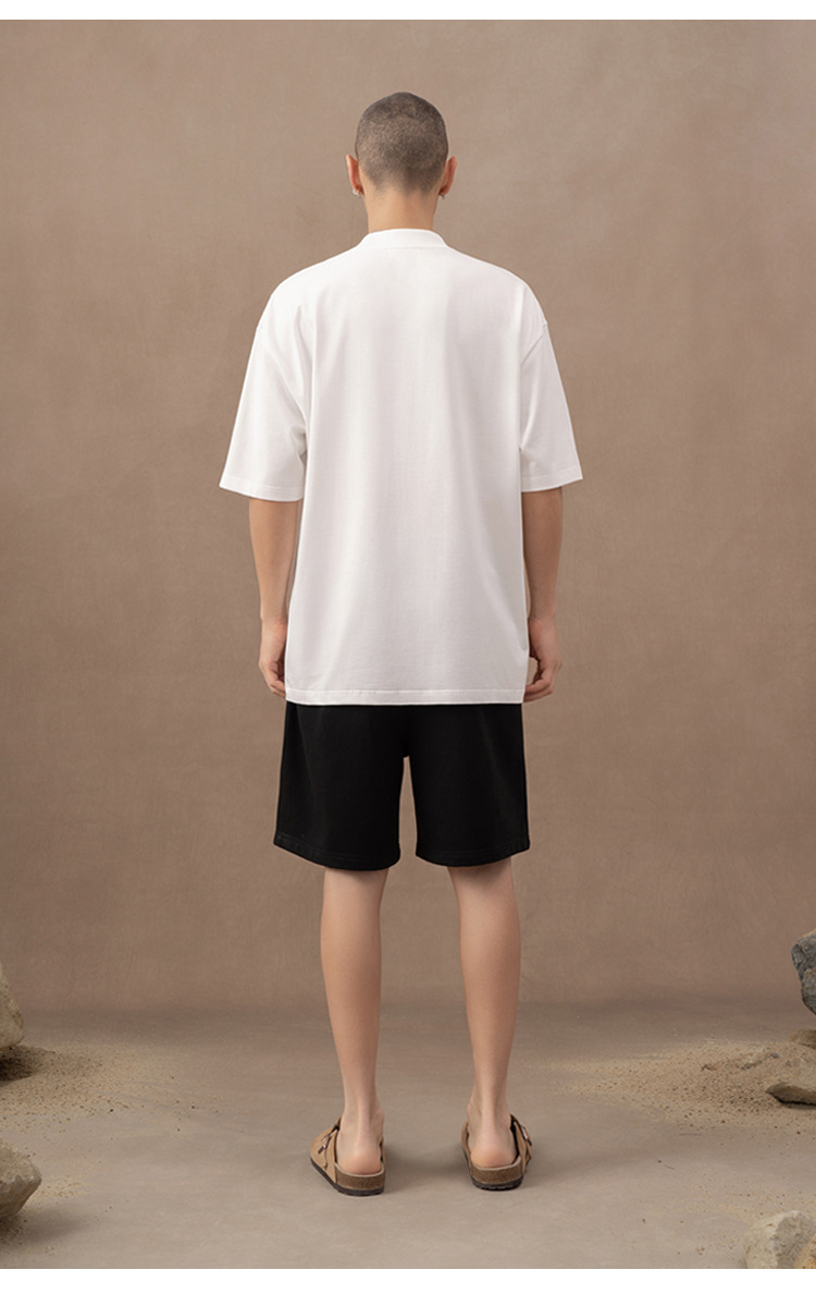 310g 반 높은 목 프로필 티셔츠 짧은 소매 남성용 무거운 느슨한 어깨 미니멀리스트 퓨어 컬러 코튼 인테리어 특대스토어 가기