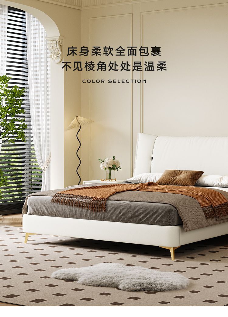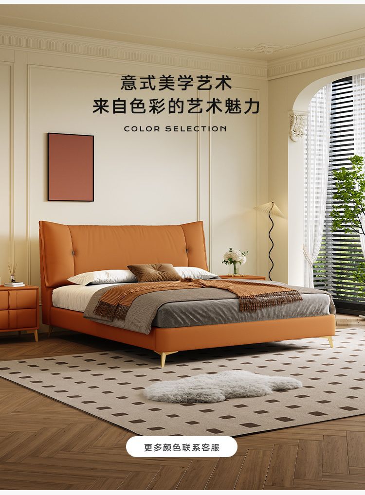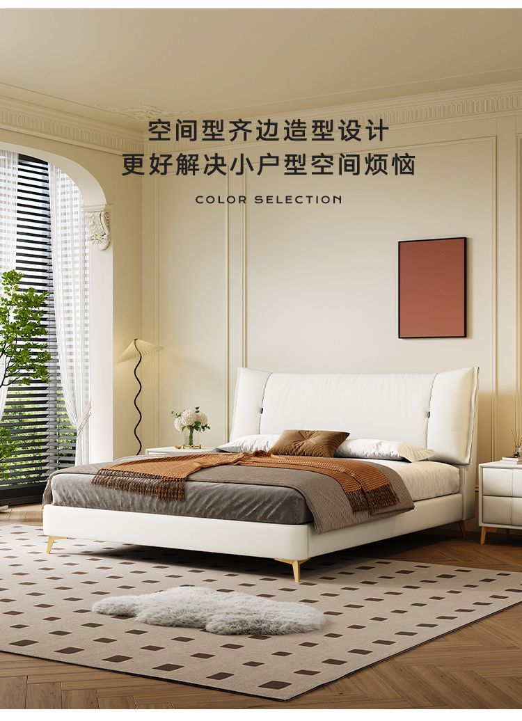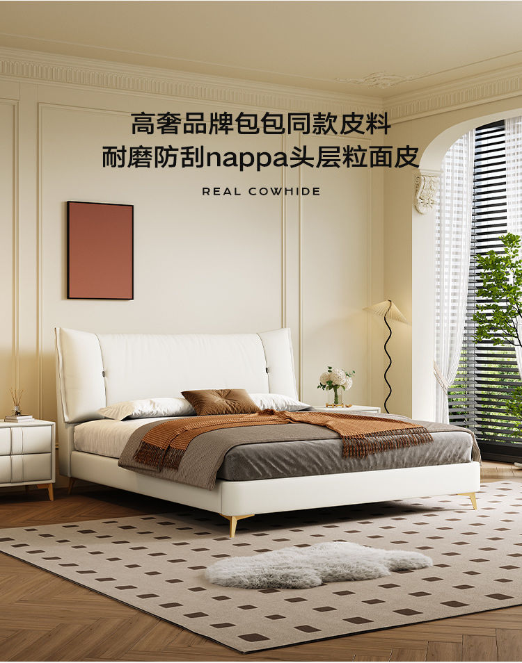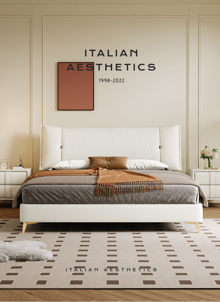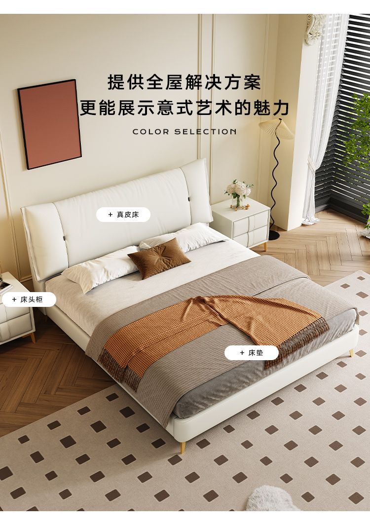 • Zunshang Edition 가죽 침대 + 천연 라텍스 매트리스 + 캐비닛 2개
