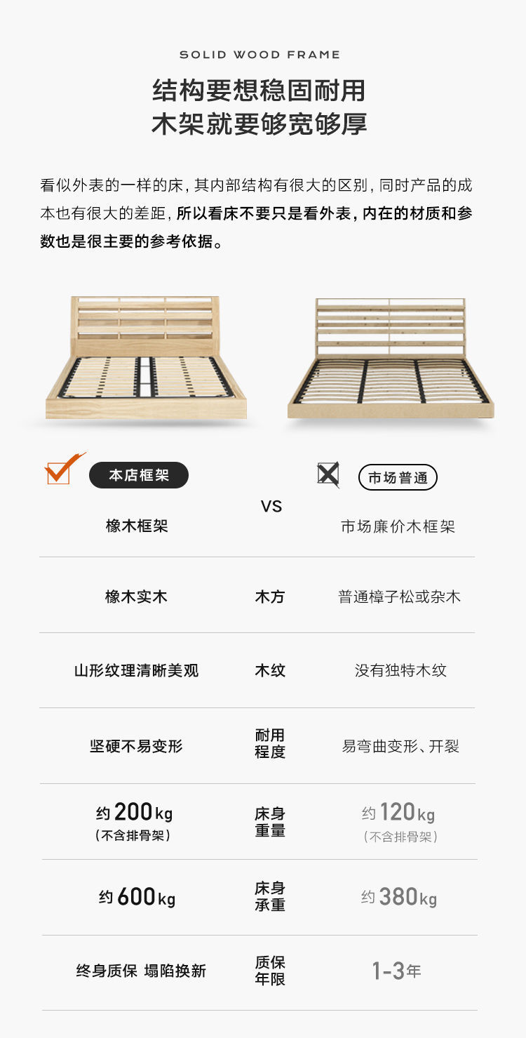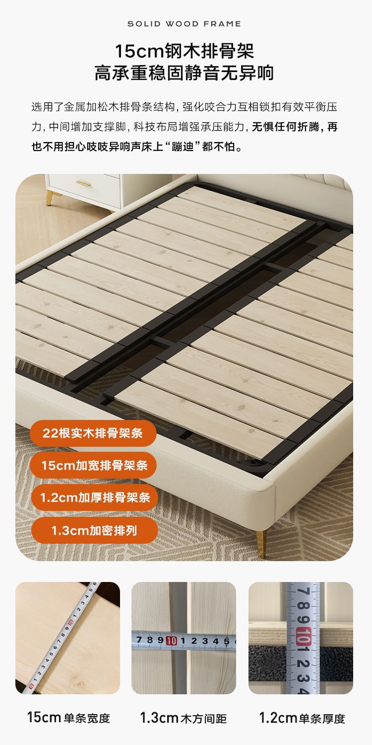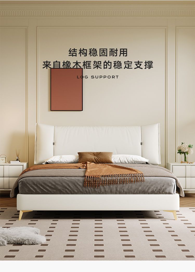 • Zunshang 버전 가죽 침대 + 원목 침대 옆 테이블 2개