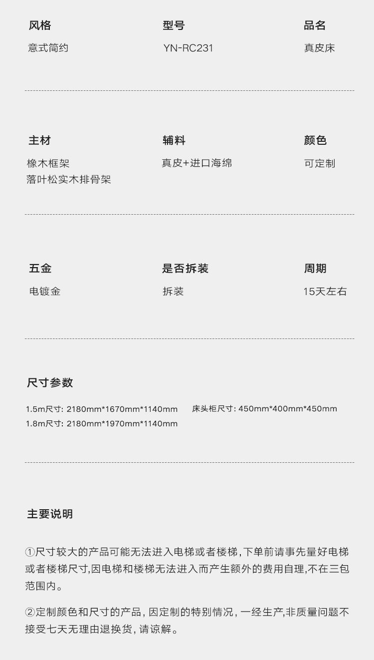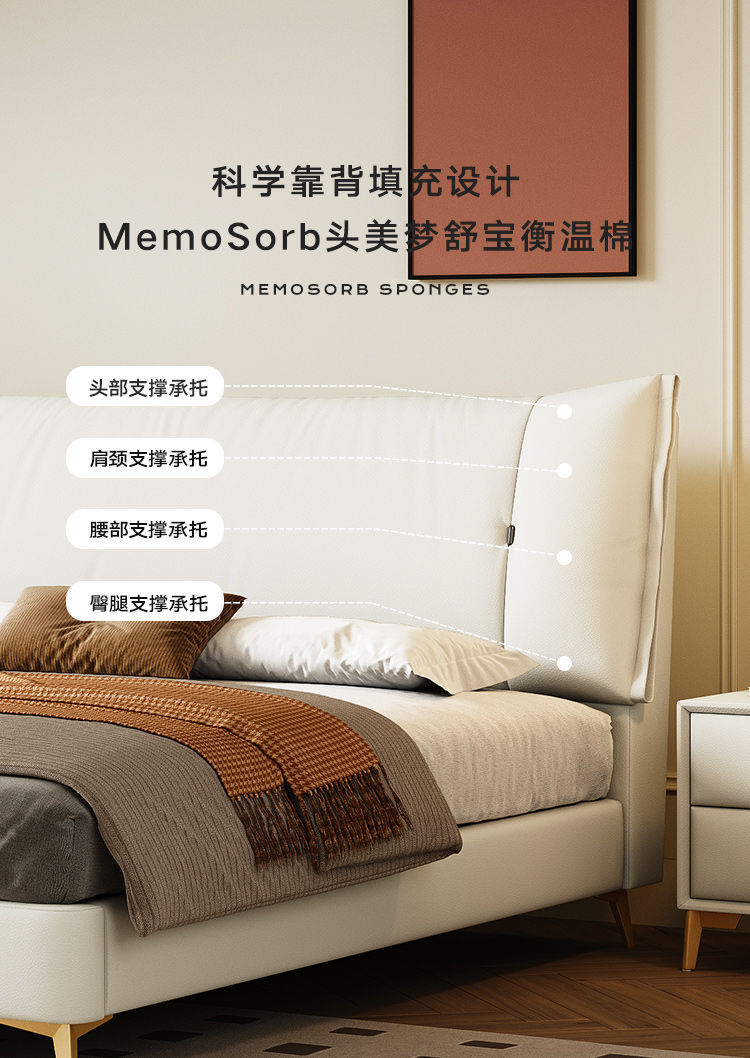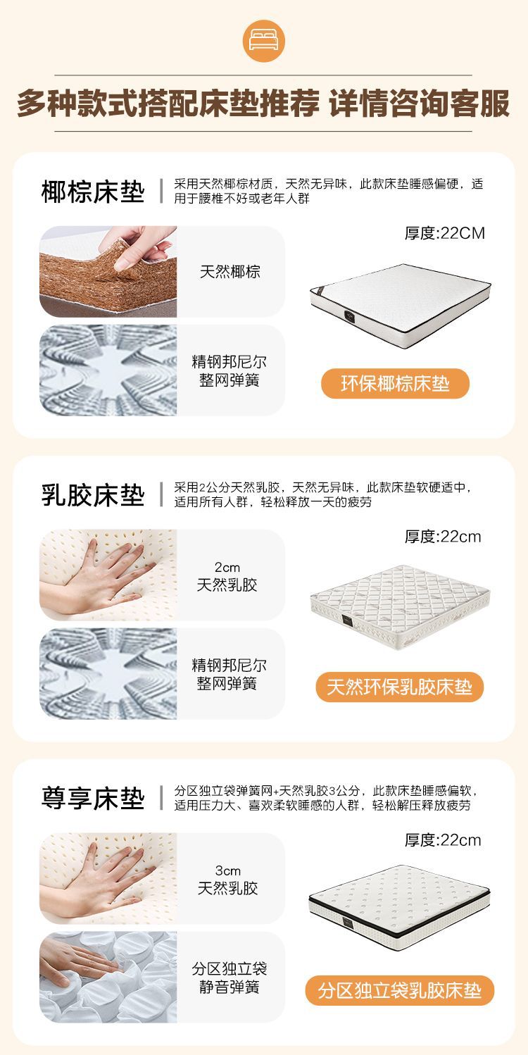 • Zunshang Edition 가죽 침대 + 독립 가방 라텍스 매트 + 캐비닛 2개