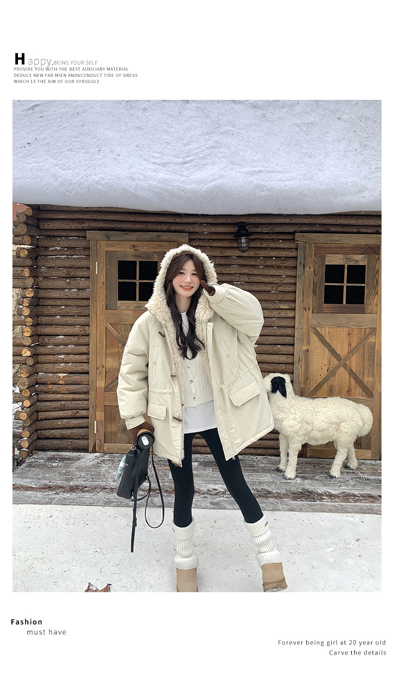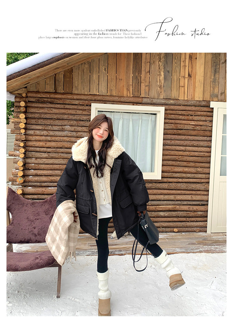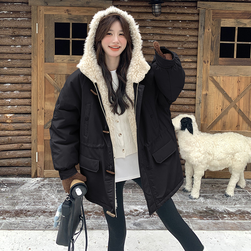 재고 뿔 두꺼운 Lambswool 후드 캐주얼 극복 5832-P275-K408스토어 가기