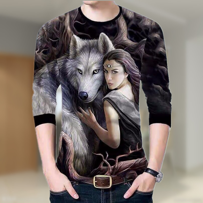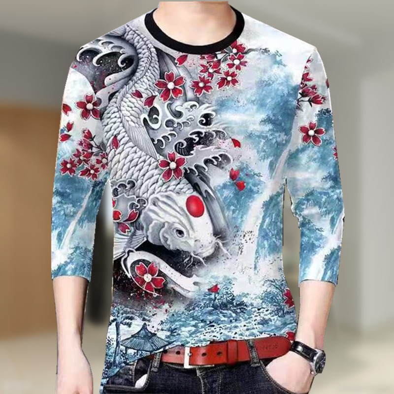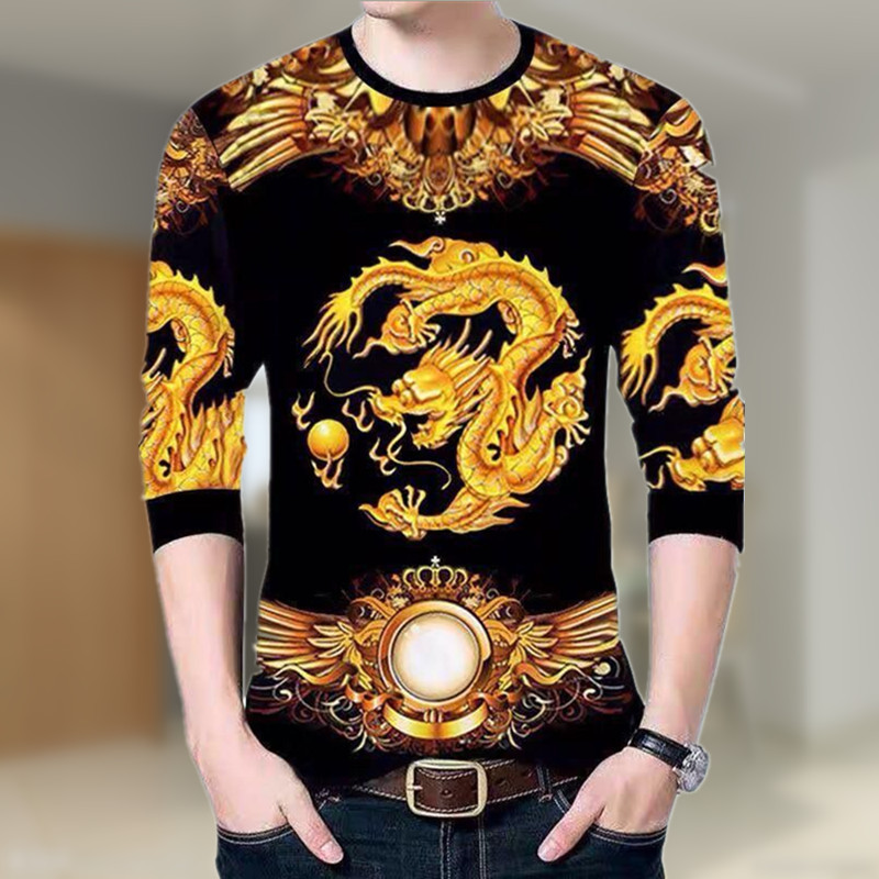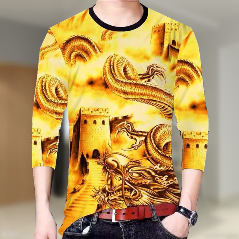 긴 소매 티셔츠 남자 가을 티셔츠 의류 중국 스타일 남성 승무원 탑 3D 맞춤형 인쇄베이스 셔츠
