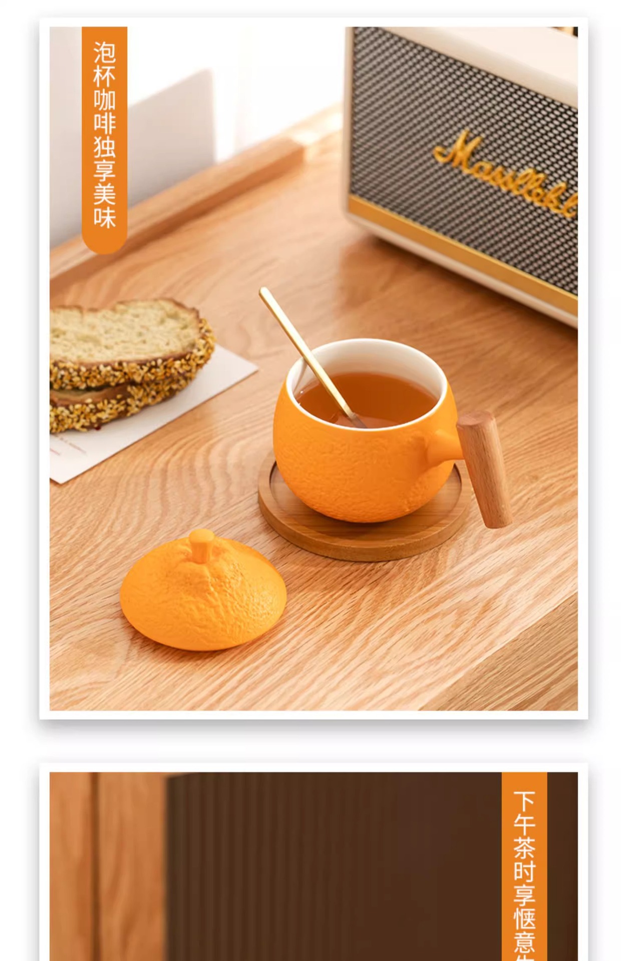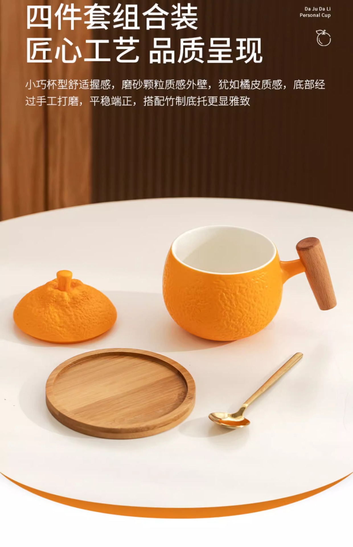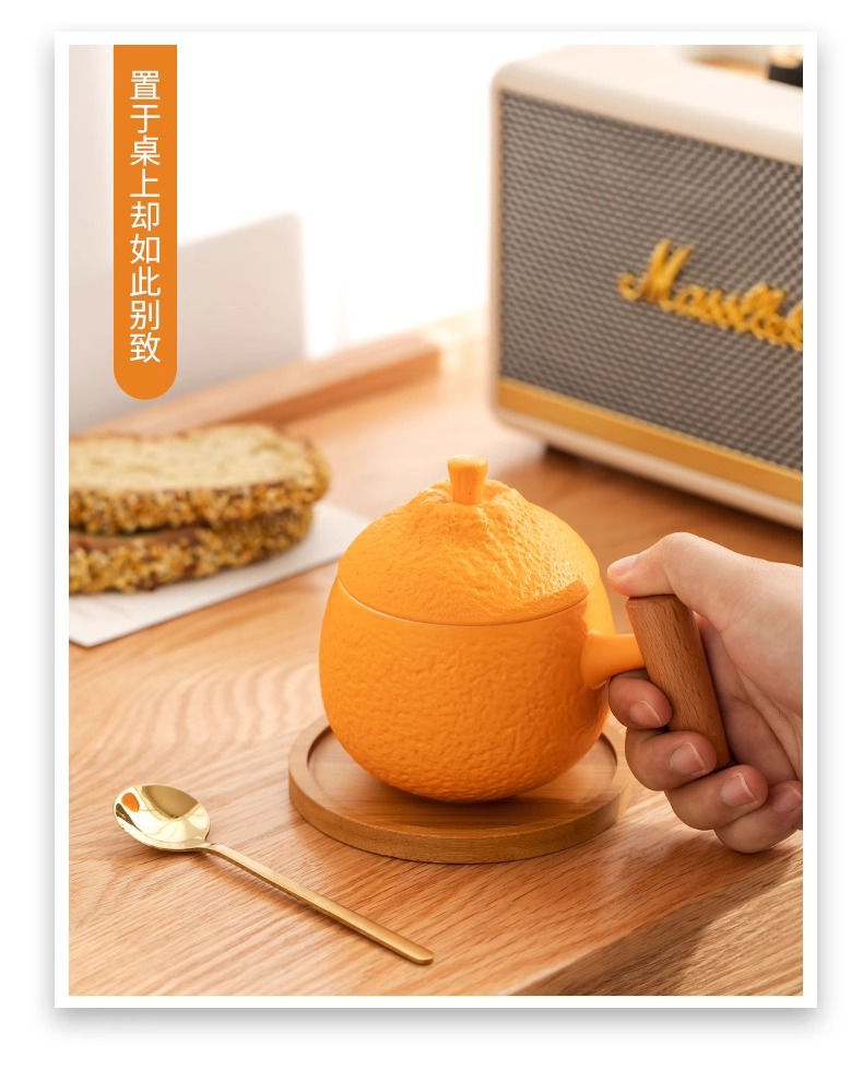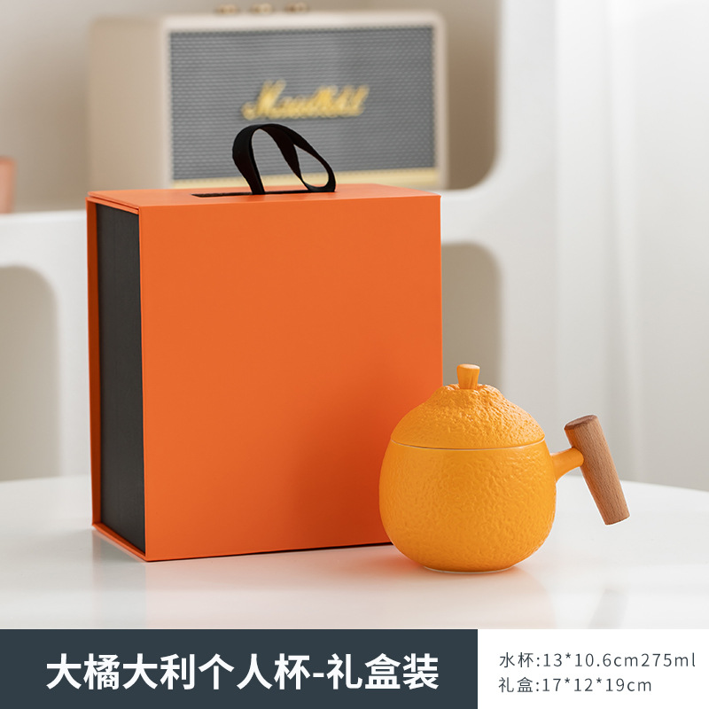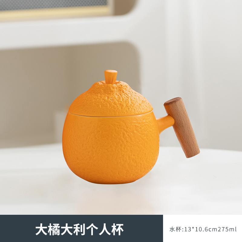 큰 오렌지 달리 머그잔 창조적 인 성격 세라믹 뚜껑 개인 컵 물 컵 커피 컵 우유 컵 선물 세트