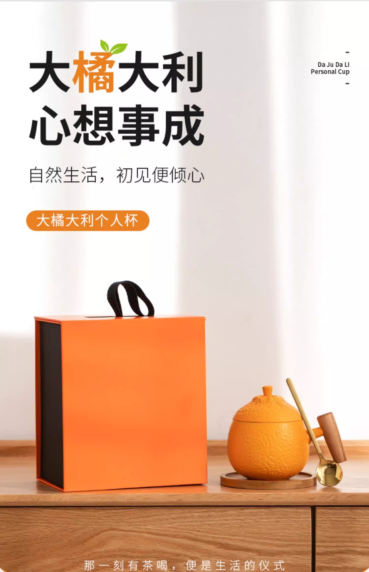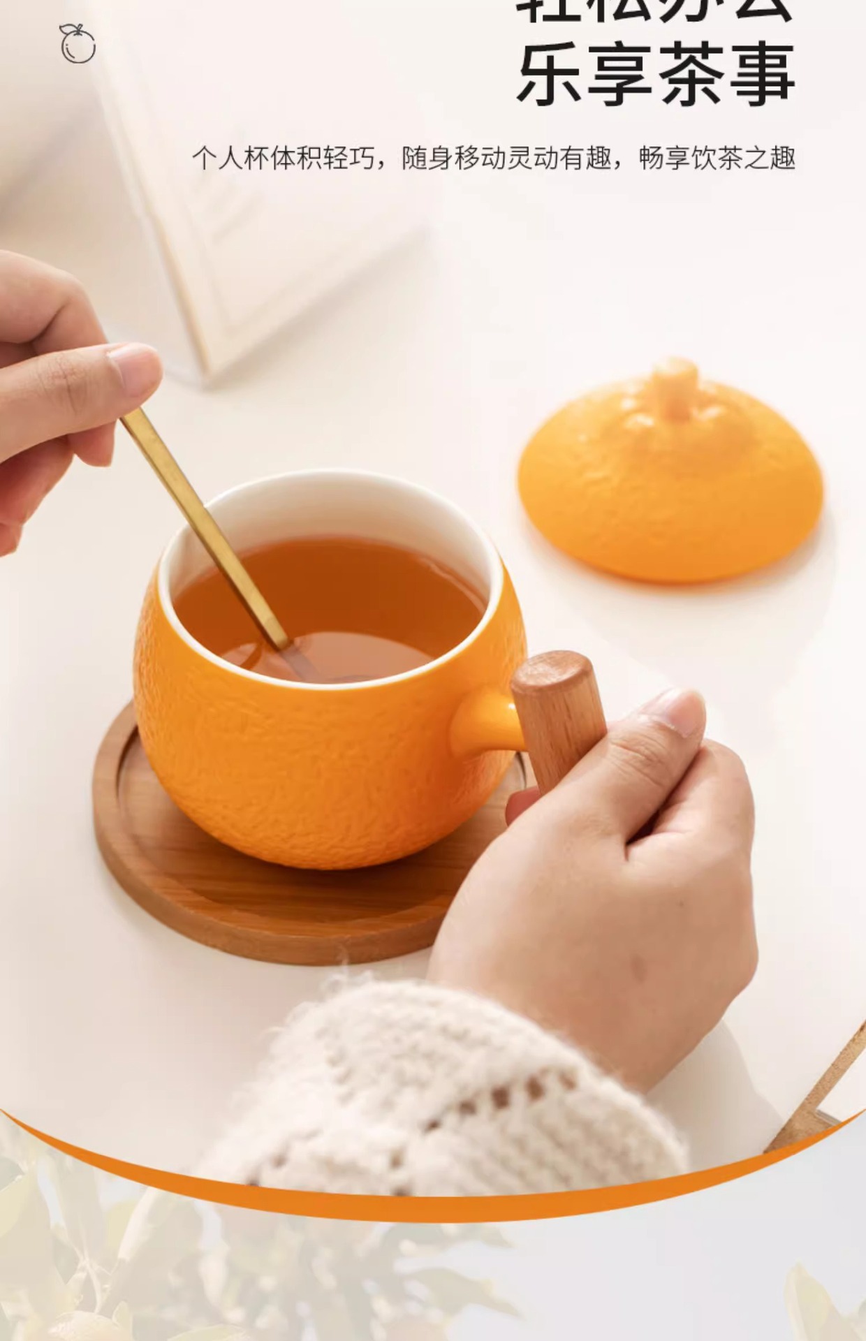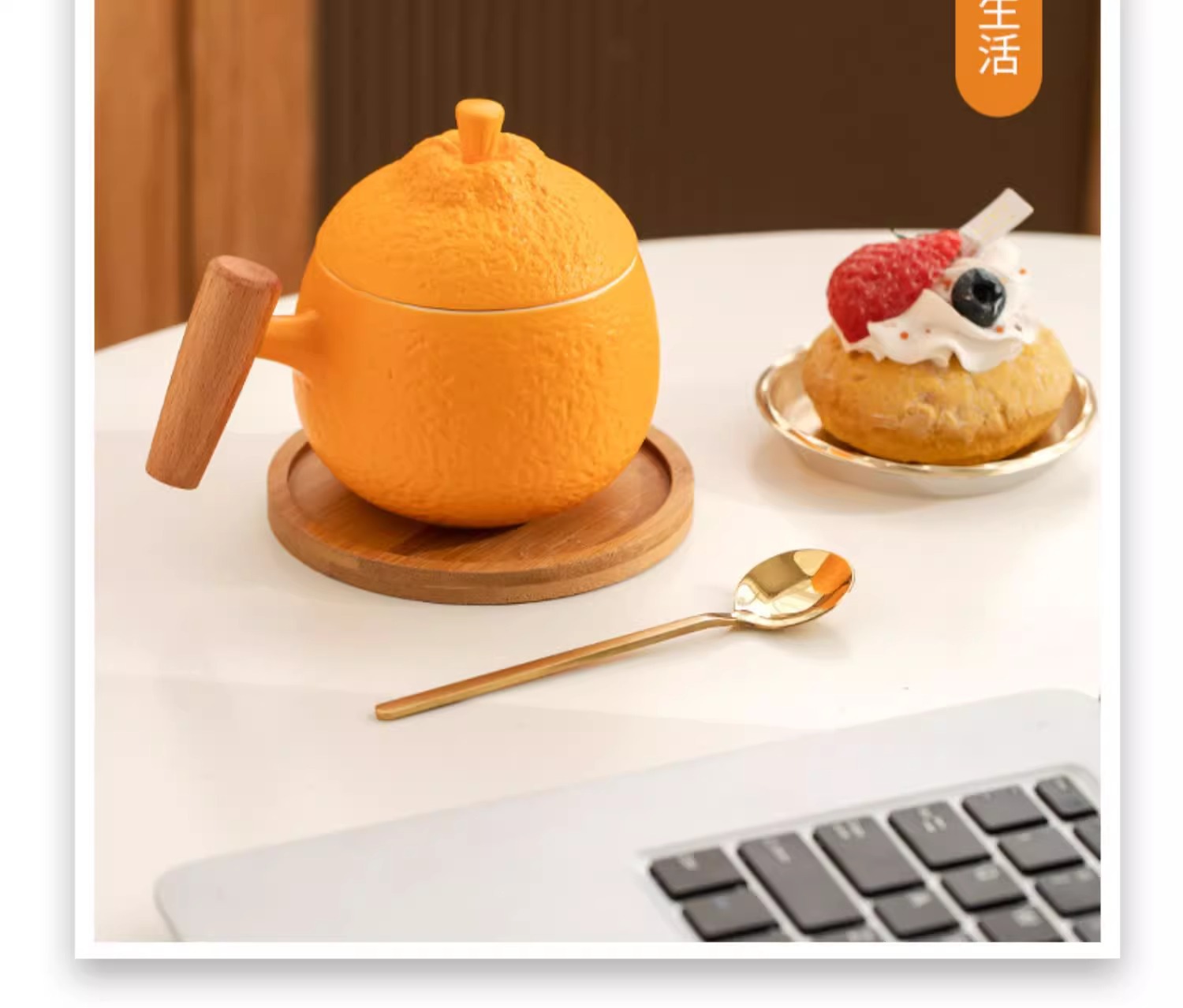 큰 오렌지 달리 머그잔 창조적 인 성격 세라믹 뚜껑 개인 컵 물 컵 커피 컵 우유 컵 선물 세트