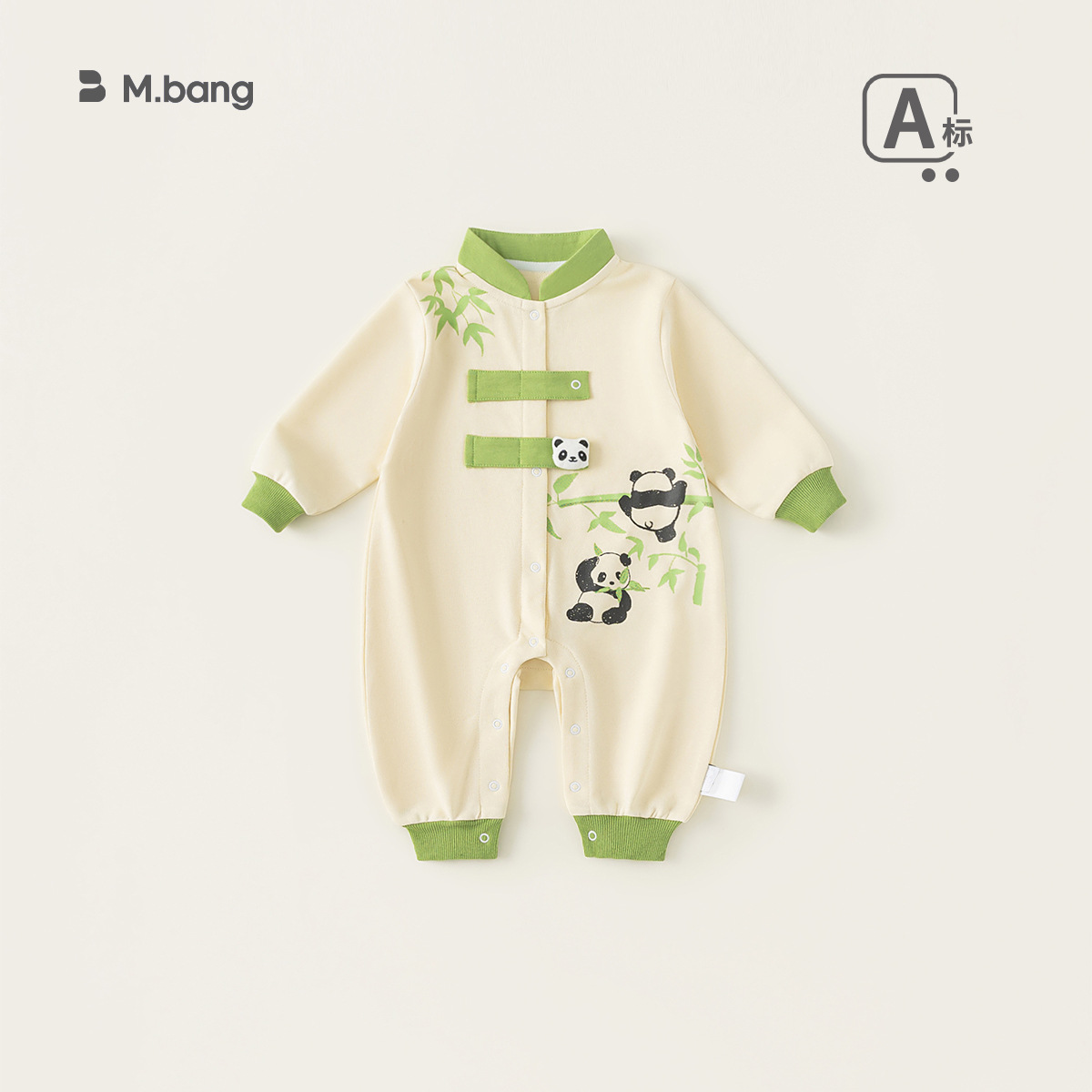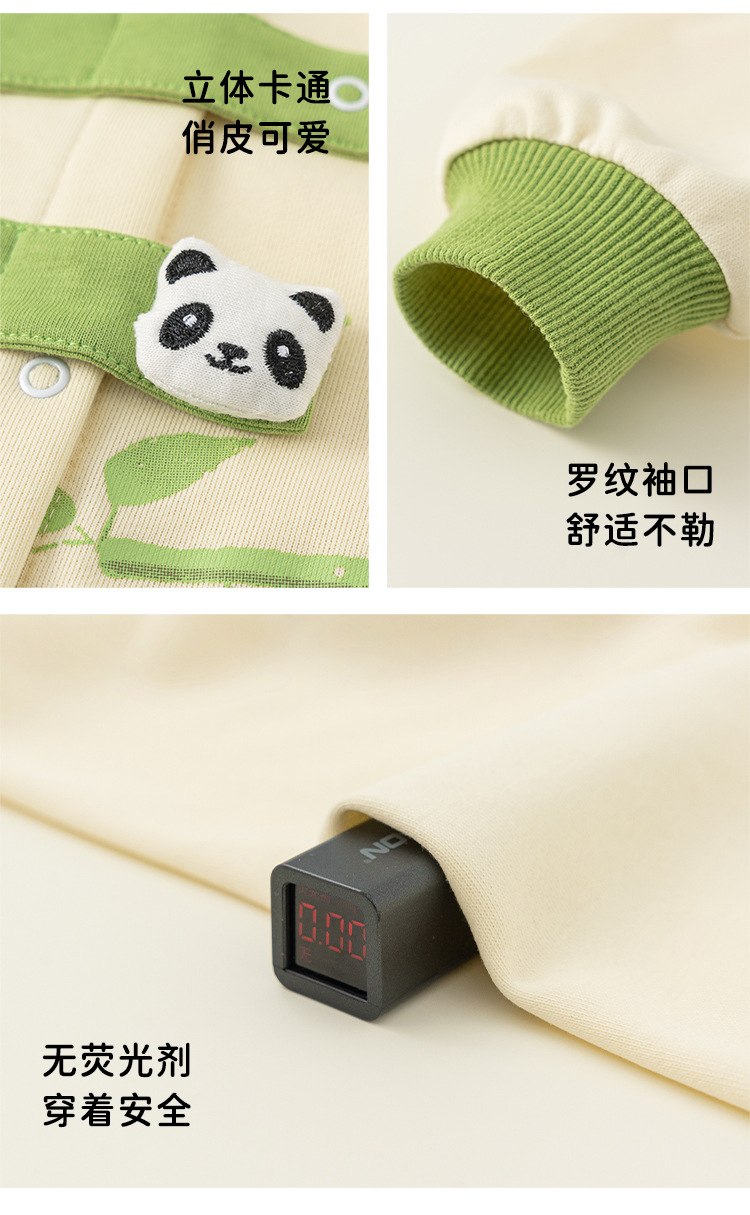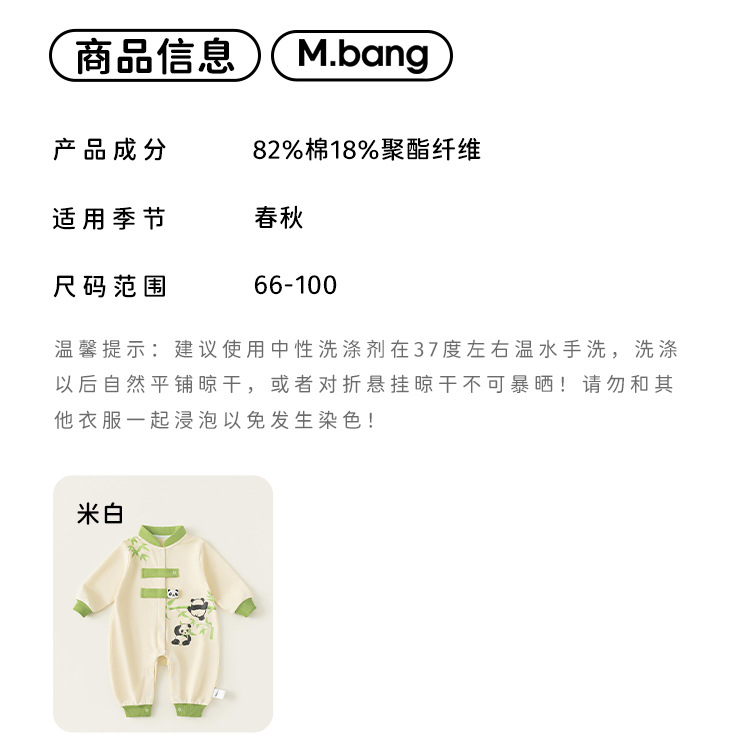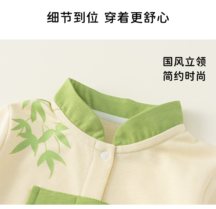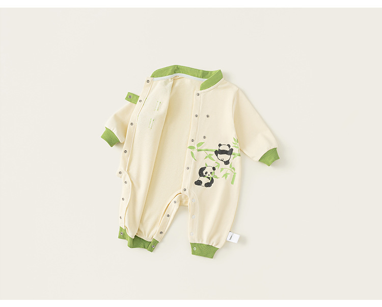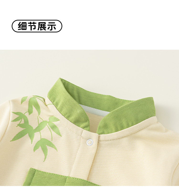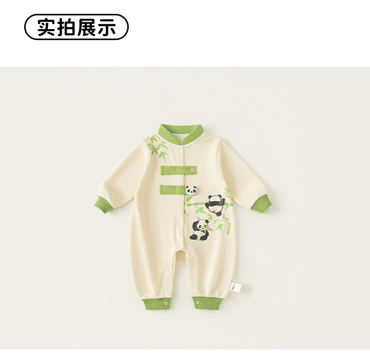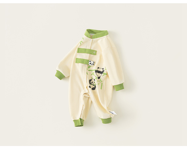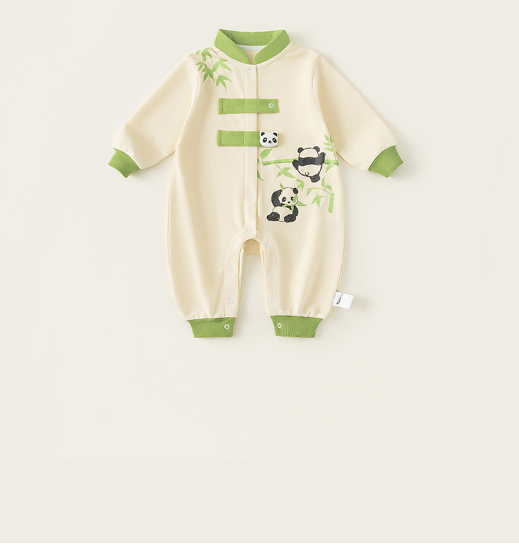 Bong Choose Boy's Spring and Autumn Contrast Color Climbing 세트 Vertical Collar National Style Long Sleeve Baby Boy's Panda 프린트 점프 수트와 함께 신생아를위한스토어 가기