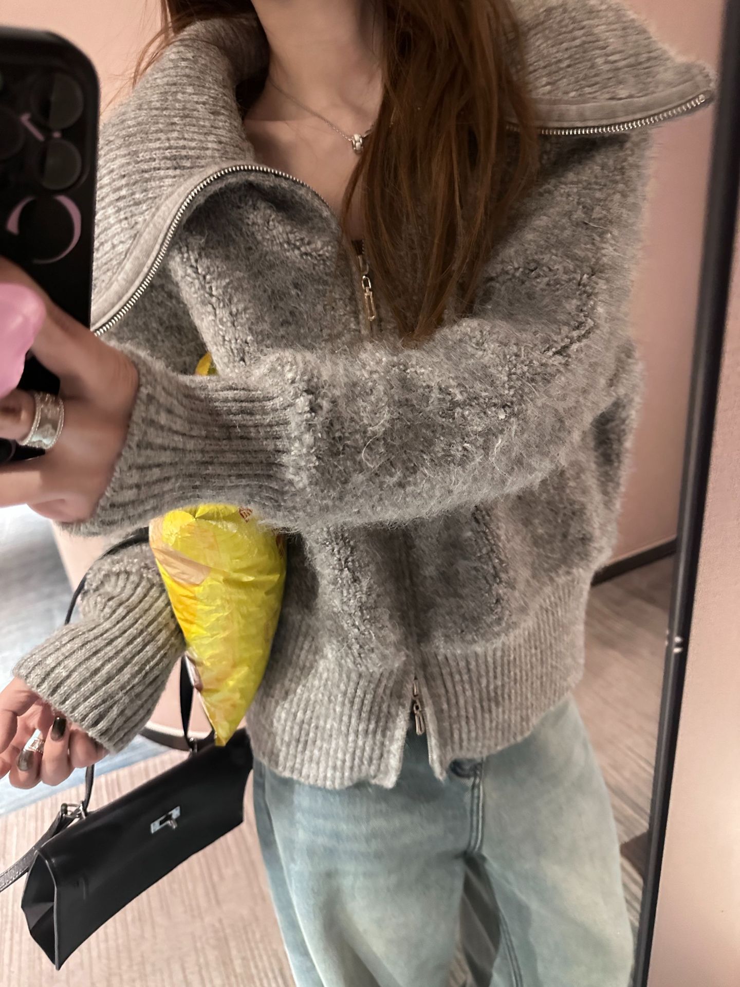 김치 컨트리 두꺼운 서클 울 랩 지퍼 니트 카디건 스웨터 재킷스토어 가기