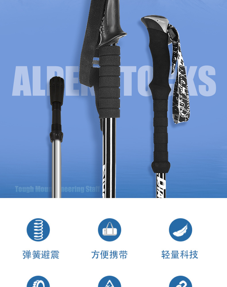 국경 간 야외 알루미늄 합금 등산 스틱 전문 하이킹 초경량 탄소 섬유 3 섹션 지팡이 텔레스코픽 접이식 지팡이스토어 가기