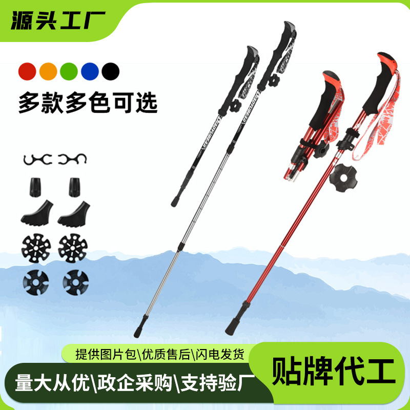 국경 간 야외 알루미늄 합금 등산 스틱 전문 하이킹 초경량 탄소 섬유 3 섹션 지팡이 텔레스코픽 접이식 지팡이