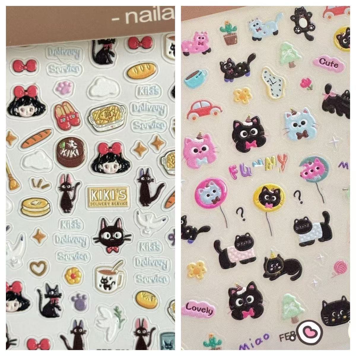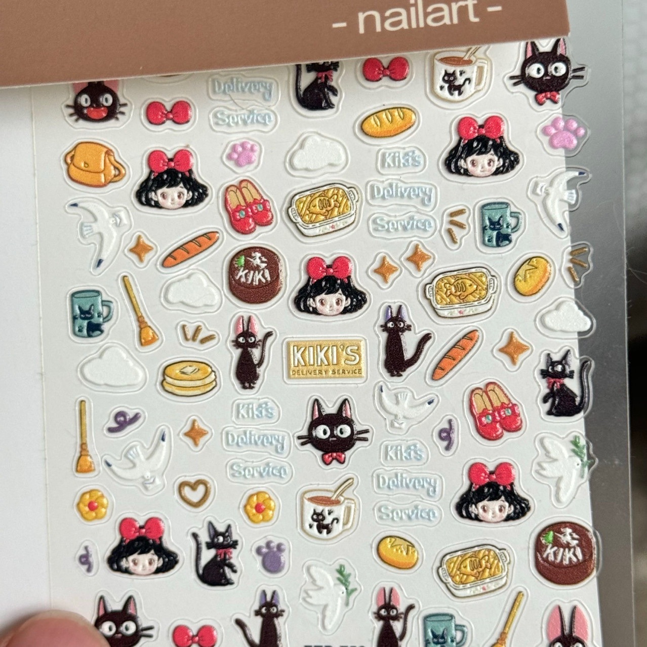 Kiki's Delivery Service 네일 아트 스티커 만화 양각 3차원 3D 워터 컵 스티커 휴대 전화 케이스 스티커 diy 카메라 ccd 스티커스토어 가기