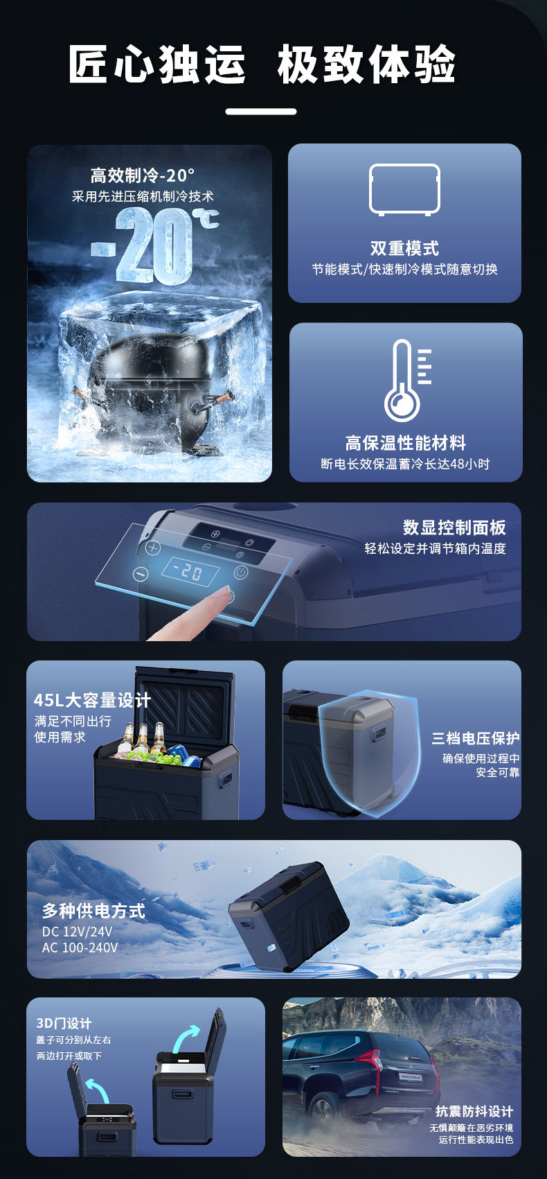 45L 모바일 휴대용 소형 냉장고 기숙사 미니 자동차 야외 냉동 자동차 냉장고 압축기 12V스토어 가기