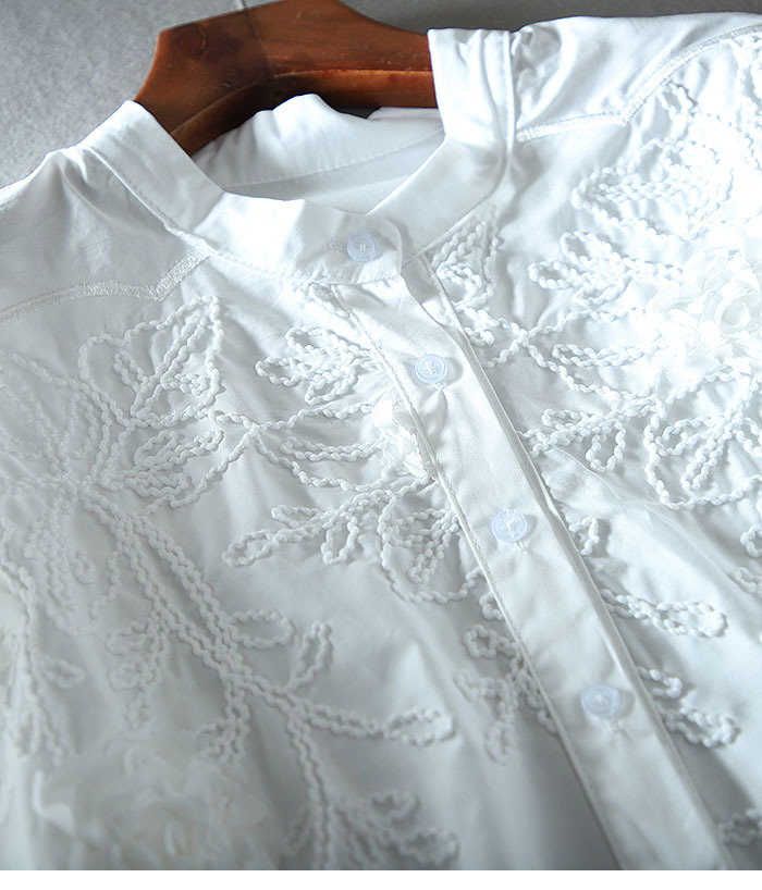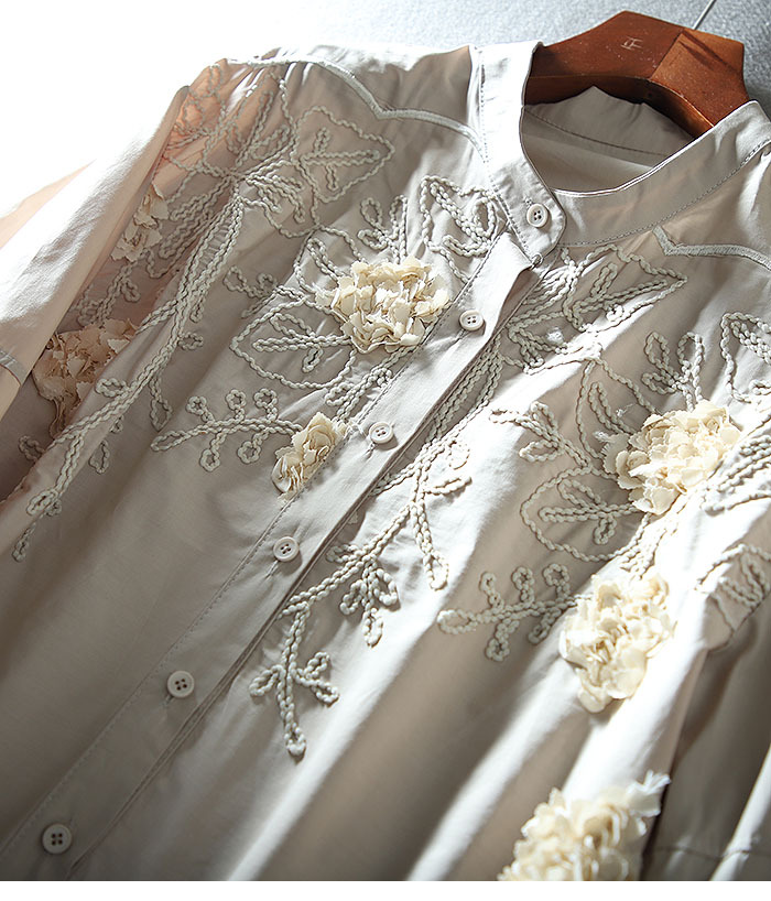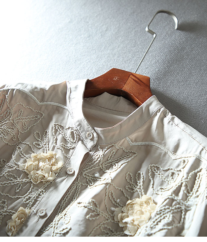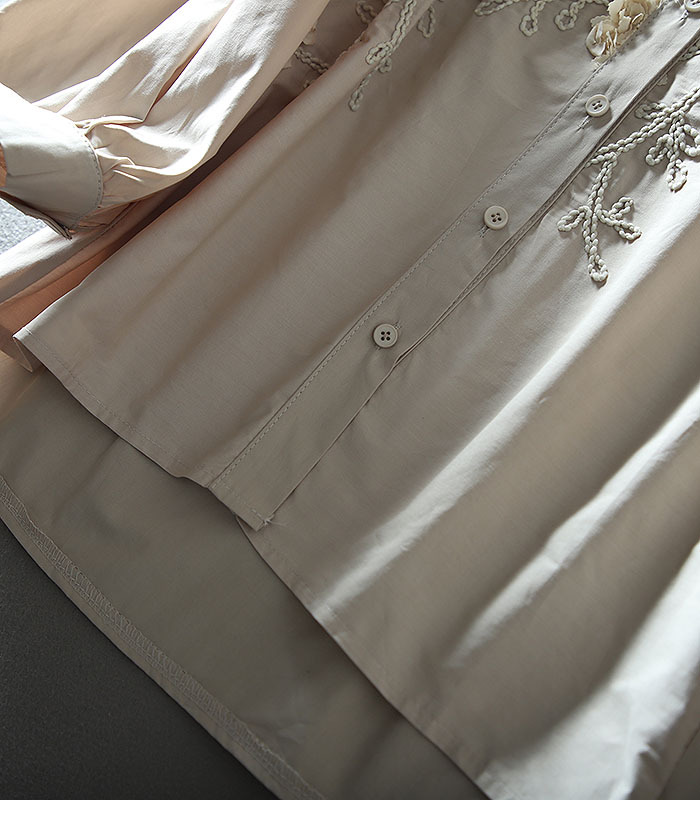 수직 칼라 레트로 중공업 짧은 랜턴 소매 느슨한 문학 스타일 셔츠 캐주얼 셔츠 봄 여성 탑스토어 가기