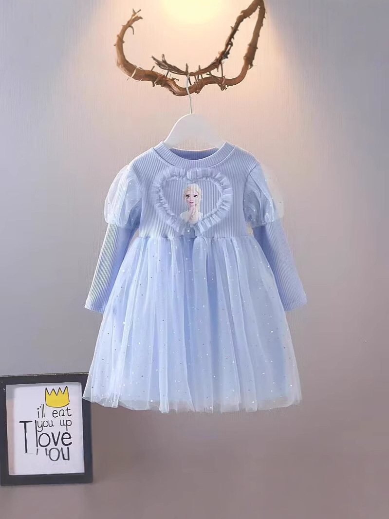 엘사 공주 원피스 봄과 가을 새 원피스 엘사 원피스 소녀 2024 새로운 생일 원피스 세련된스토어 가기