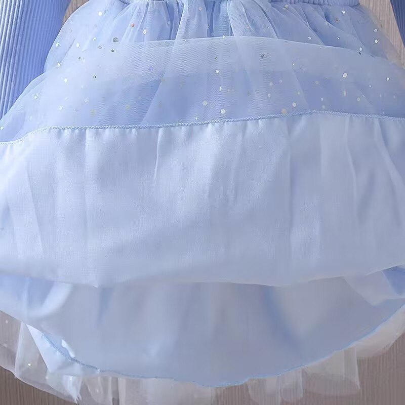엘사 공주 원피스 봄과 가을 새 원피스 엘사 원피스 소녀 2024 새로운 생일 원피스 세련된