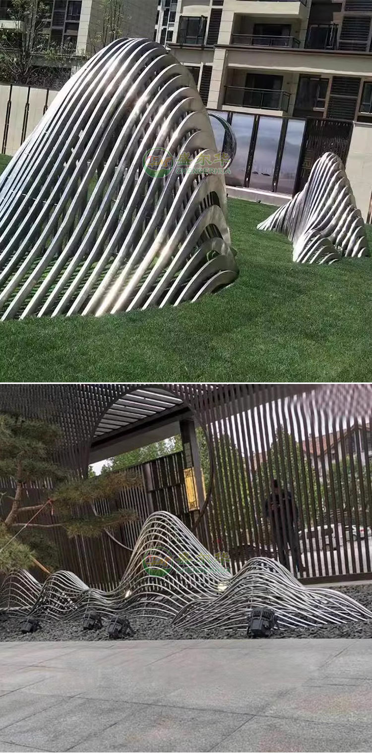 스테인레스 스틸 대형 중공 암석 조각 야외 분수 풀 빌라 호텔 판매 사무실 커뮤니티 창조적 인 장식품