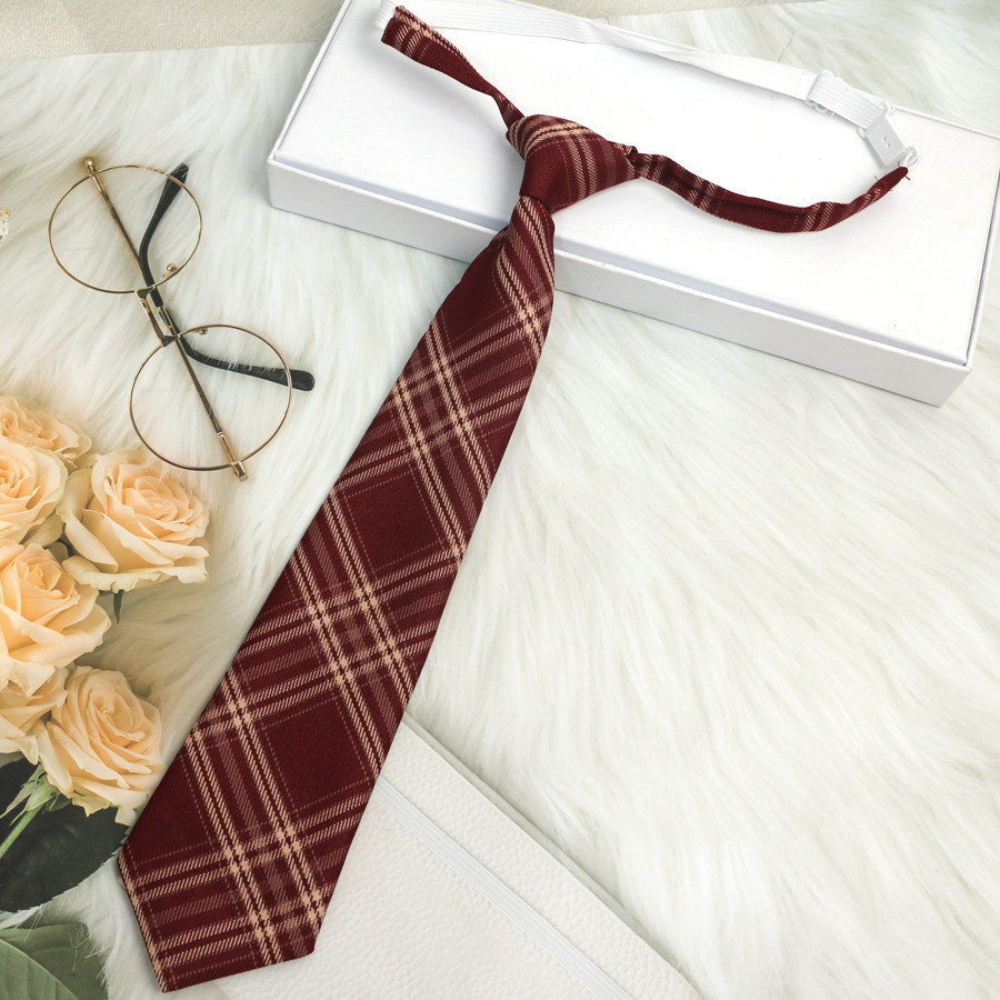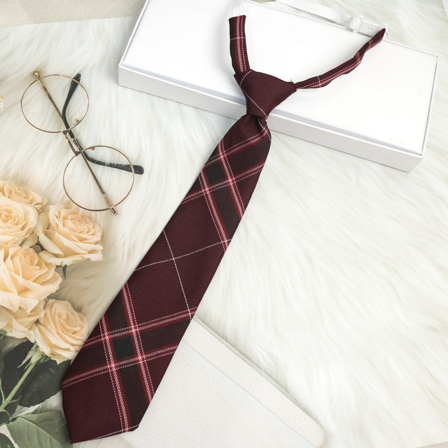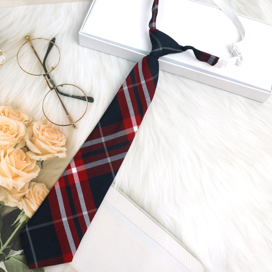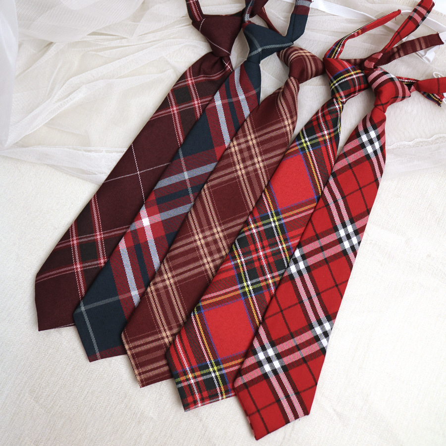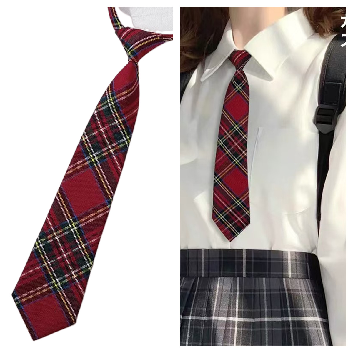 학생 대학 스타일 셔츠 여성 넥타이 레드 썬 스타일 Jk 넥타이없는 넥타이 여성 학교 컬러 격자 무늬 화이트 셔츠 넥타이 여성 넥타이