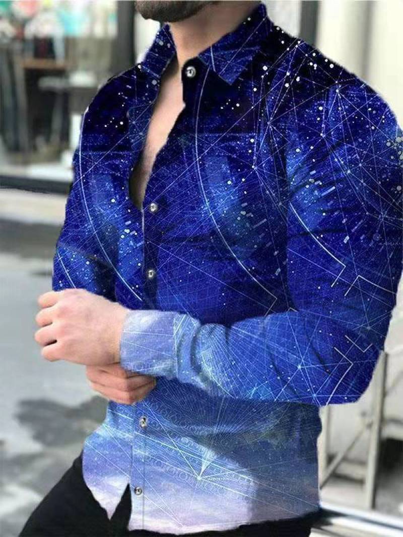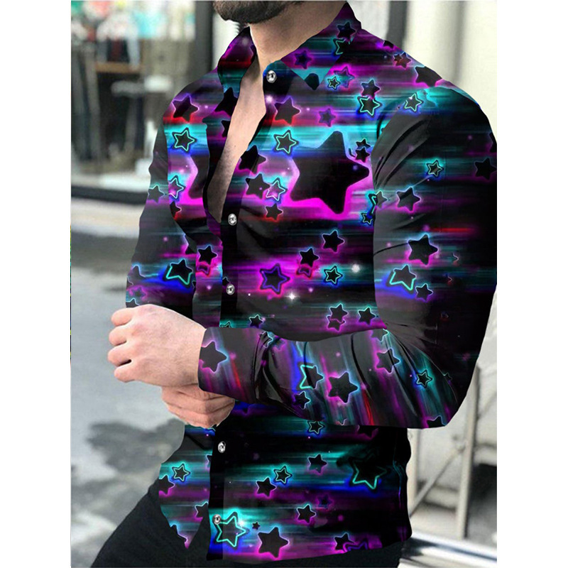 유럽과 미국의 봄 새로운 남성의 3D 인쇄 독특한 캐주얼 긴 소매 엘 셔츠 남성용 플러스 사이즈 셔츠