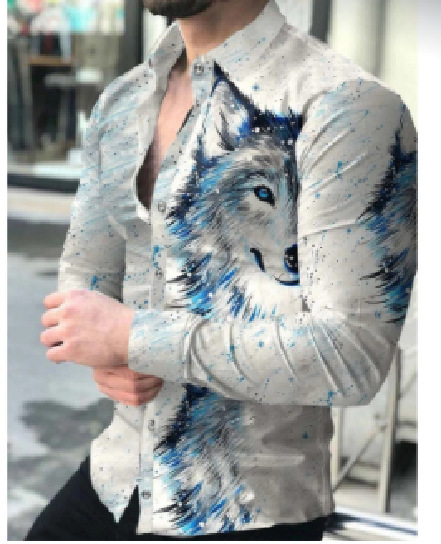 유럽과 미국의 봄 새로운 남성의 3D 인쇄 독특한 캐주얼 긴 소매 엘 셔츠 남성용 플러스 사이즈 셔츠스토어 가기