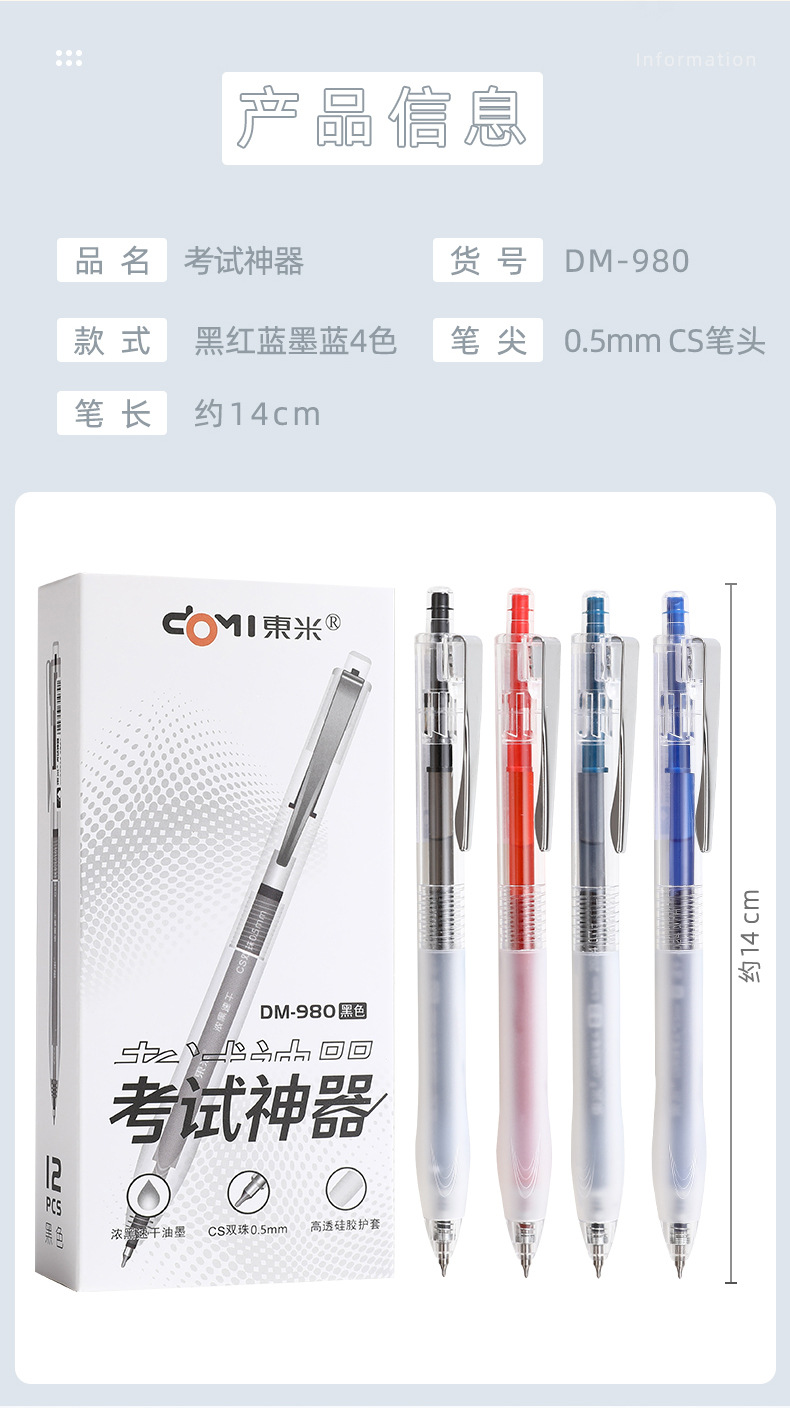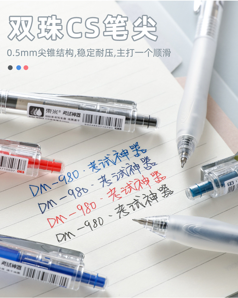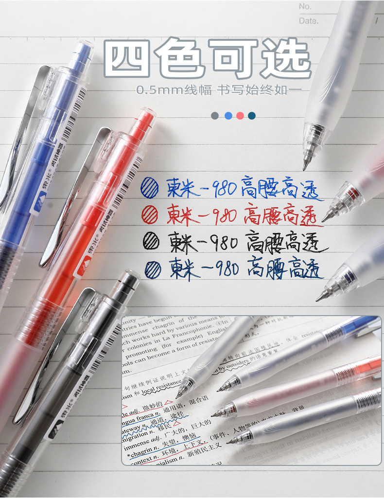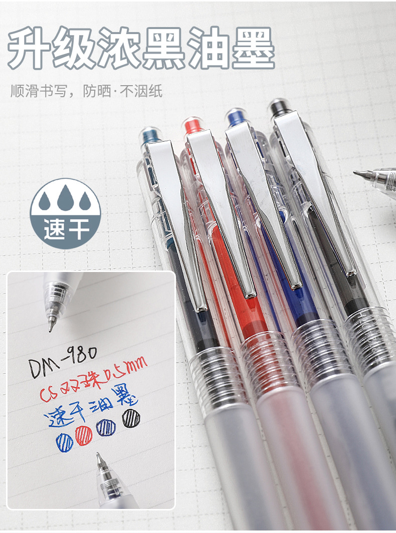 동미 980 테스트 아티팩트 프레스 젤 펜 간단한 투명 소프트 그립 사인 펜 CS 더블 비드 빠른 드라이 브러시 펜