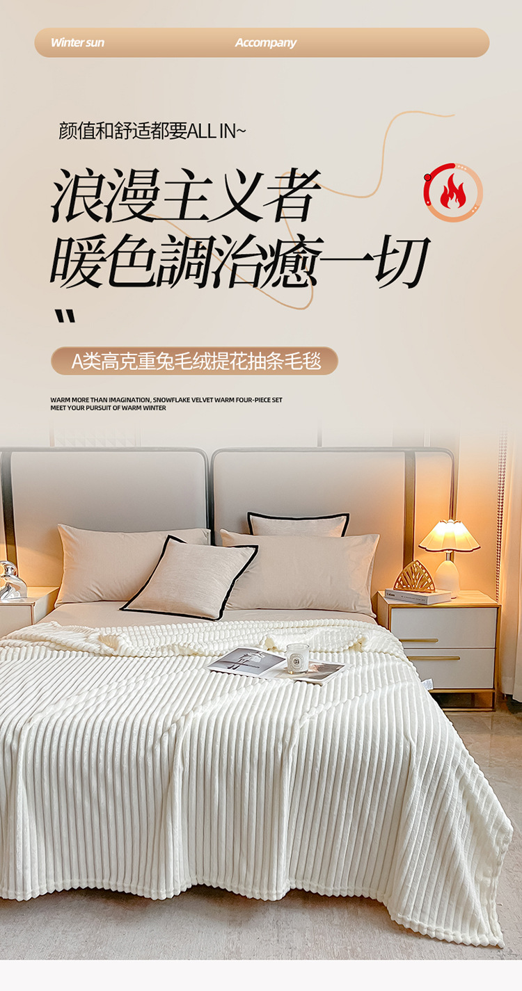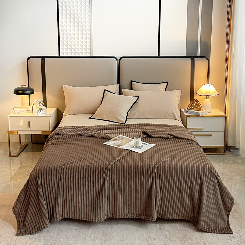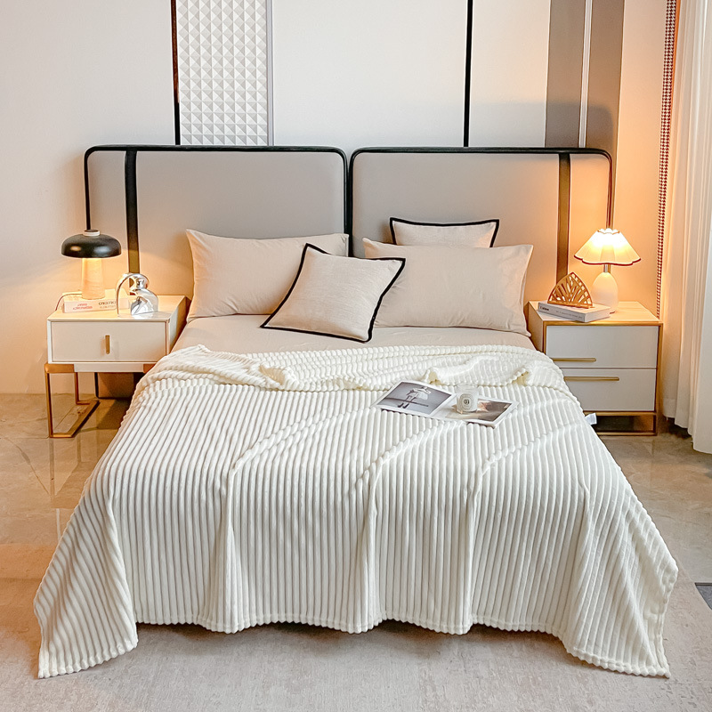 크로스보더 토끼털 스트라이프 플란넬 담요, 다리덮개, 단색담요, 플란넬 시트, 담요, 낮잠담요스토어 가기