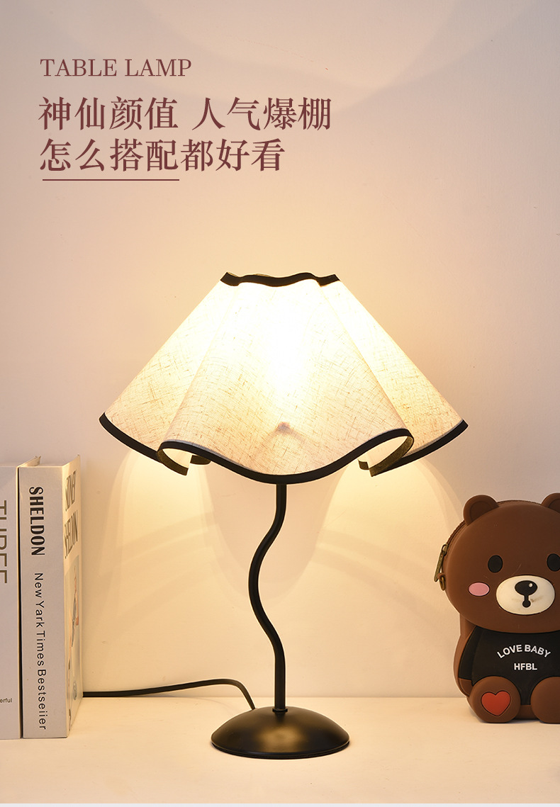 현대 간단한 테이블 램프 침실 침실 램프 인 창조적 인 꽃잎 복고풍 테이블 램프 홈스테이 모델 룸 장식 야간 조명