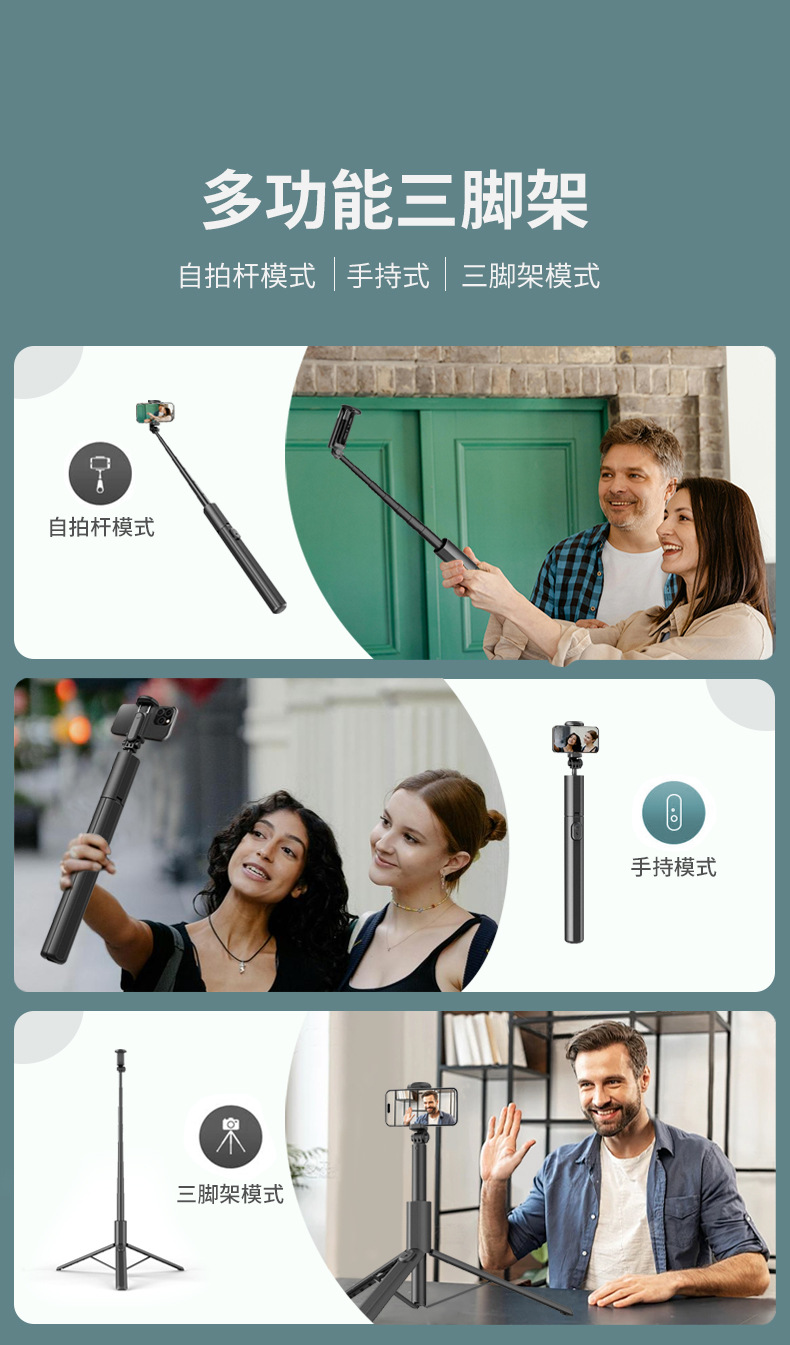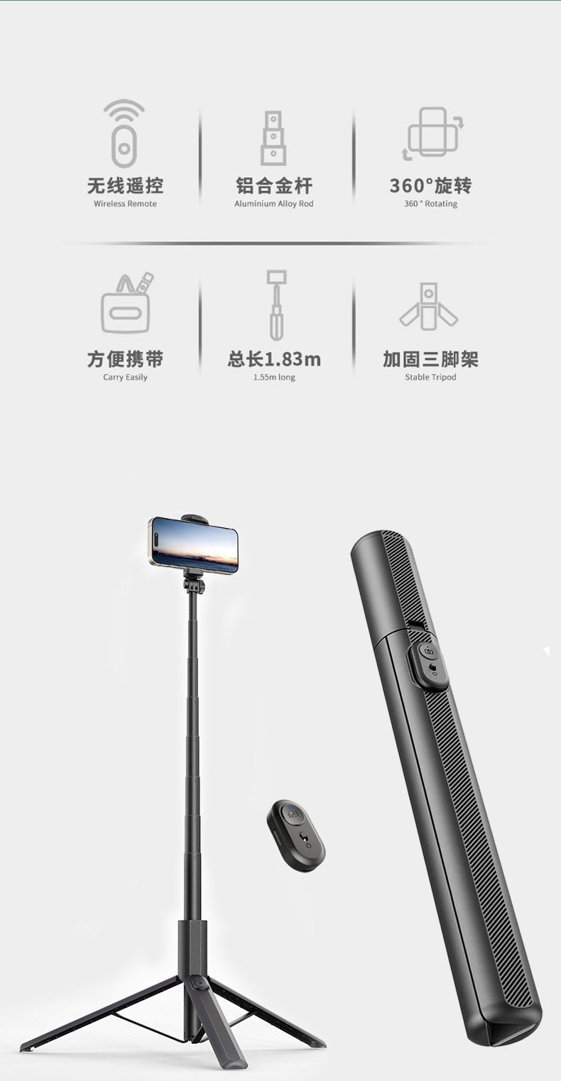 새로운 셀카 스틱 블루투스 원격 제어 통합 숨겨진 핸드 헬드 랜딩 라이브 카메라 다기능 삼각대스토어 가기